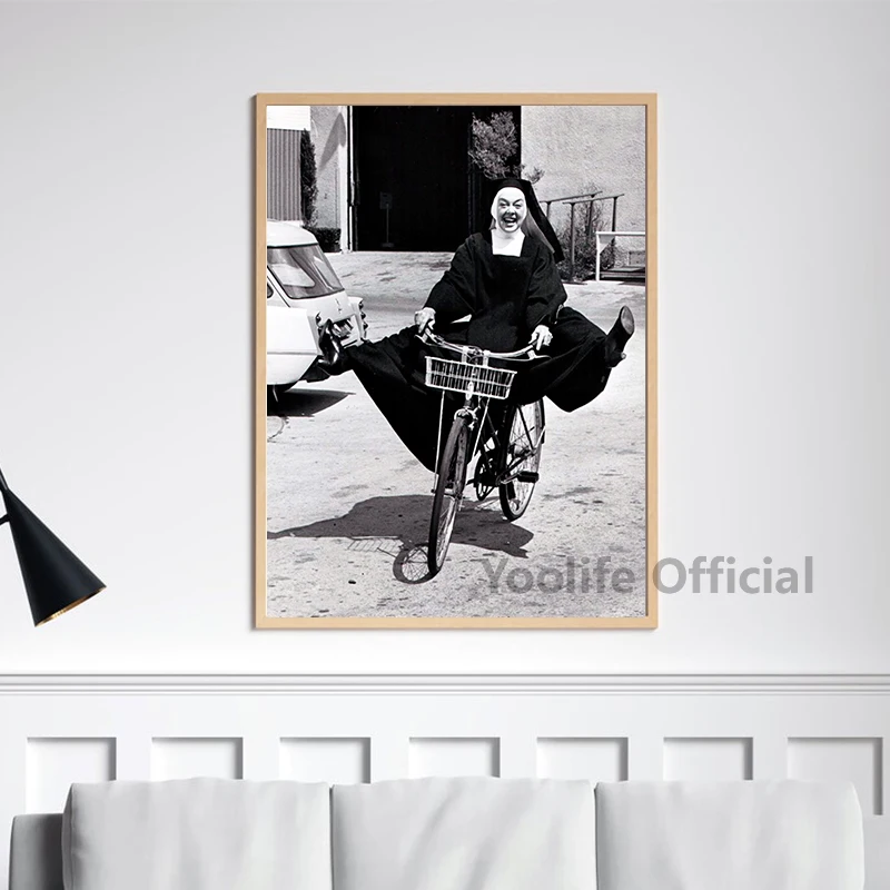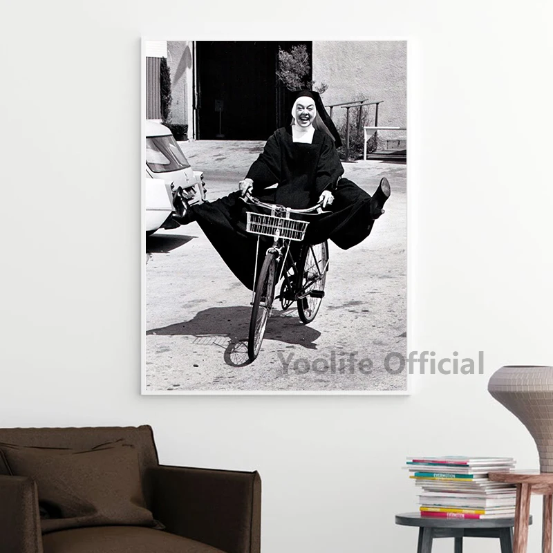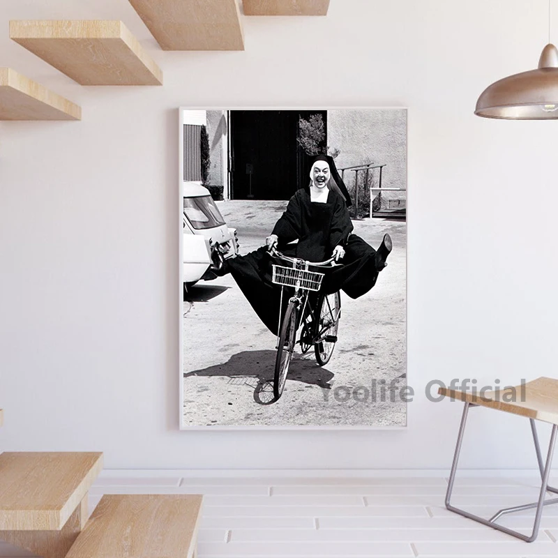 Винтажный фото-постер черного и белого цветов на велосипеде, Картина на холсте, забавные настенные картины, Необычные принты для гостиной, домашний декор