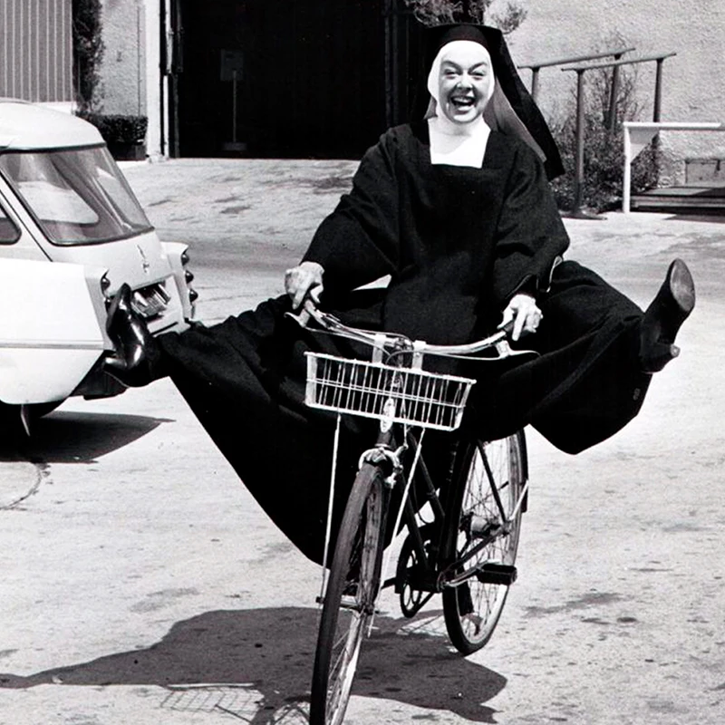 ThemeNun on Bicycle Black White Photo Canvas Print