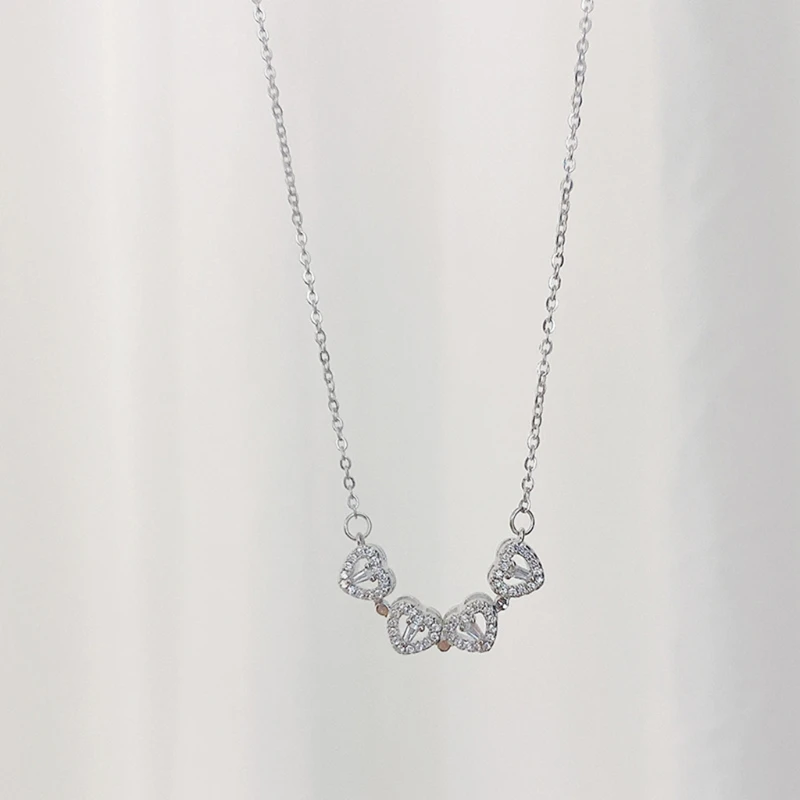 Ретро Магнитный складной В форме сердечка четырехлистного клевера ожерелье, 4-в-1 дизайн, которую можно носить разными модели, первая модель заключается в том, что четыре сердца объединяются в четырехлистным клевером для женщин ожерелье, А другое-четыре сердца, выложенные в 4 ожерелья в форме любви.