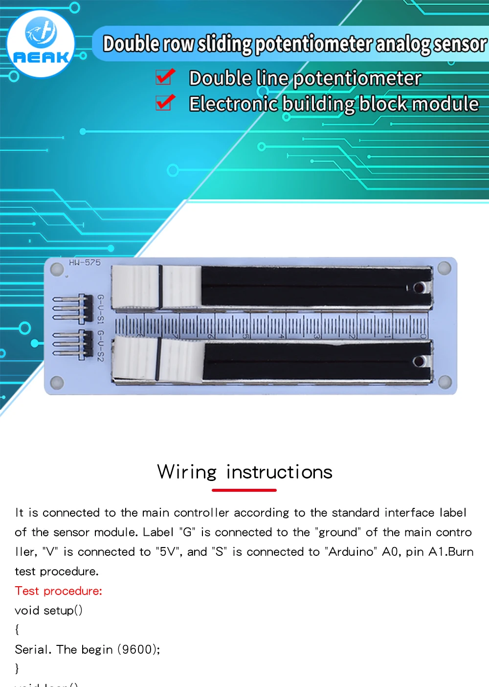 Электронный строительный блок 10K, двухрядный скользящий линейный потенциометр для Arduino микшера, линейное скользящее сопротивление