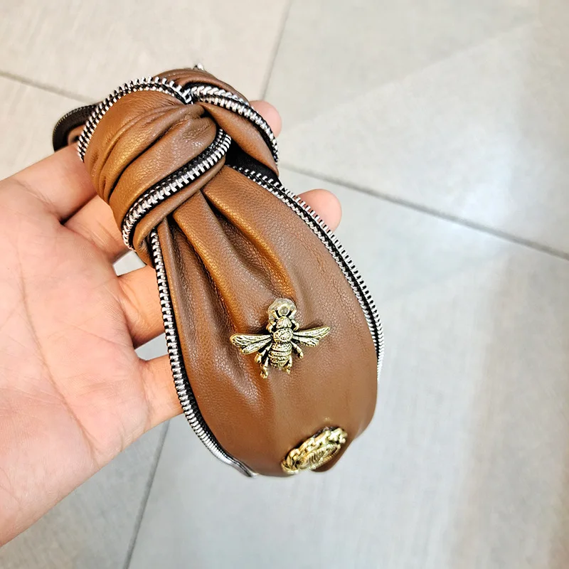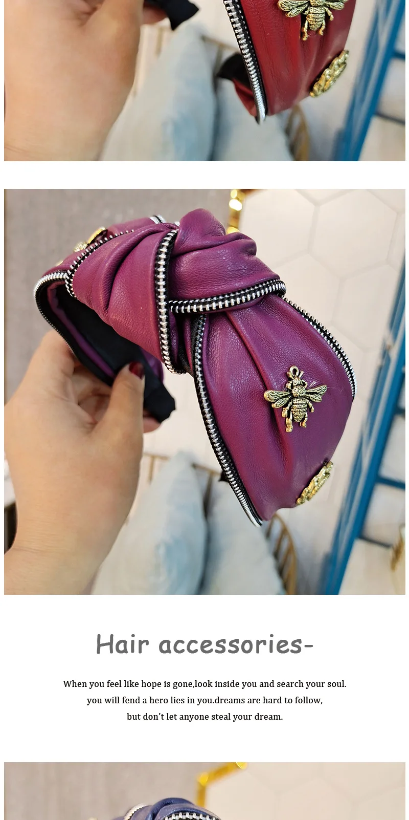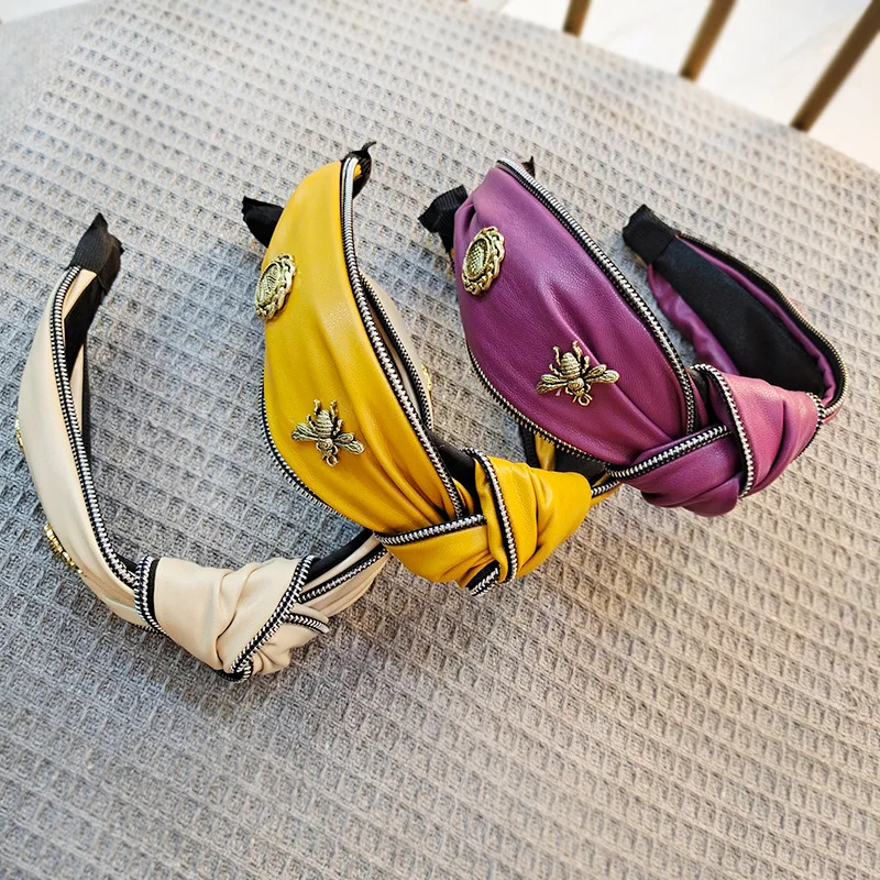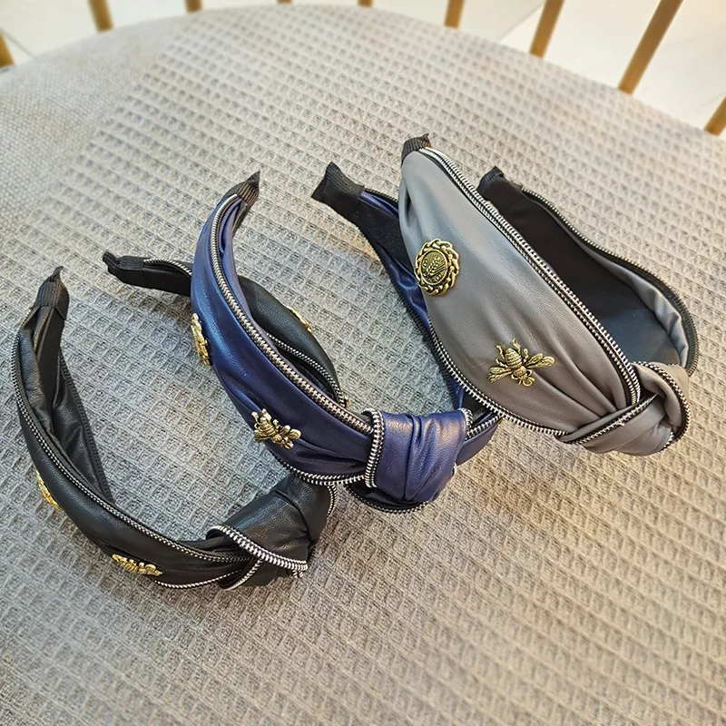 Ободок для волос из ПУ кожи Женский, Винтажный Классический обруч на молнии, аксессуар на голову