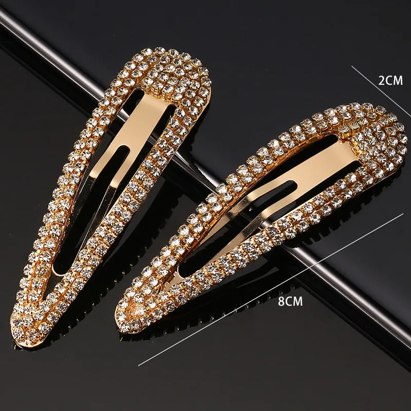 Золотистая металлическая шпилька для волос со стразами, модная лаконичная заколка для волос с геометрическим рисунком, заколки для волос для женщин с кристаллами