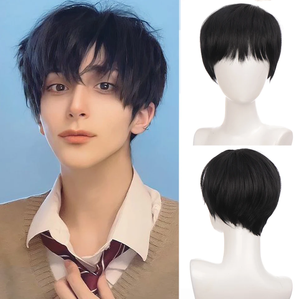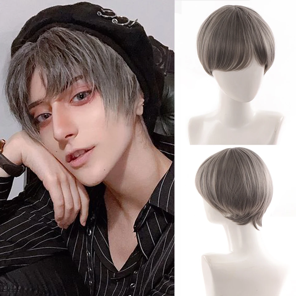 Мужской парик для косплея HOUYAN, синтетический парик с короткими волосами волчьего хвоста, белый, черный, термостойкий парик