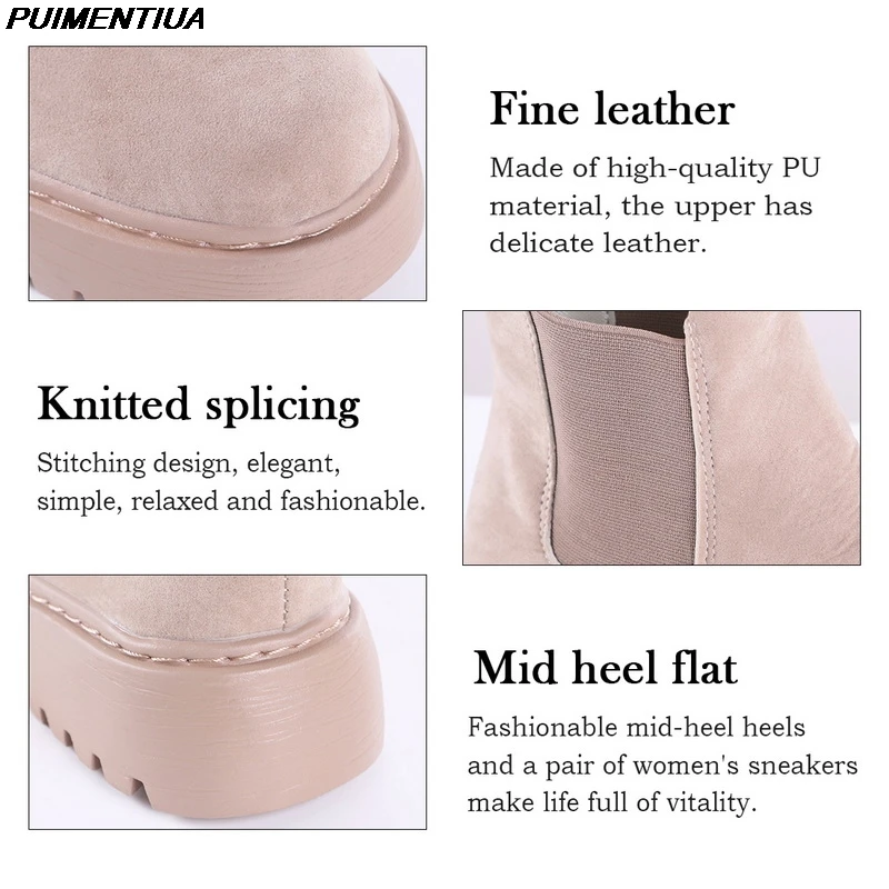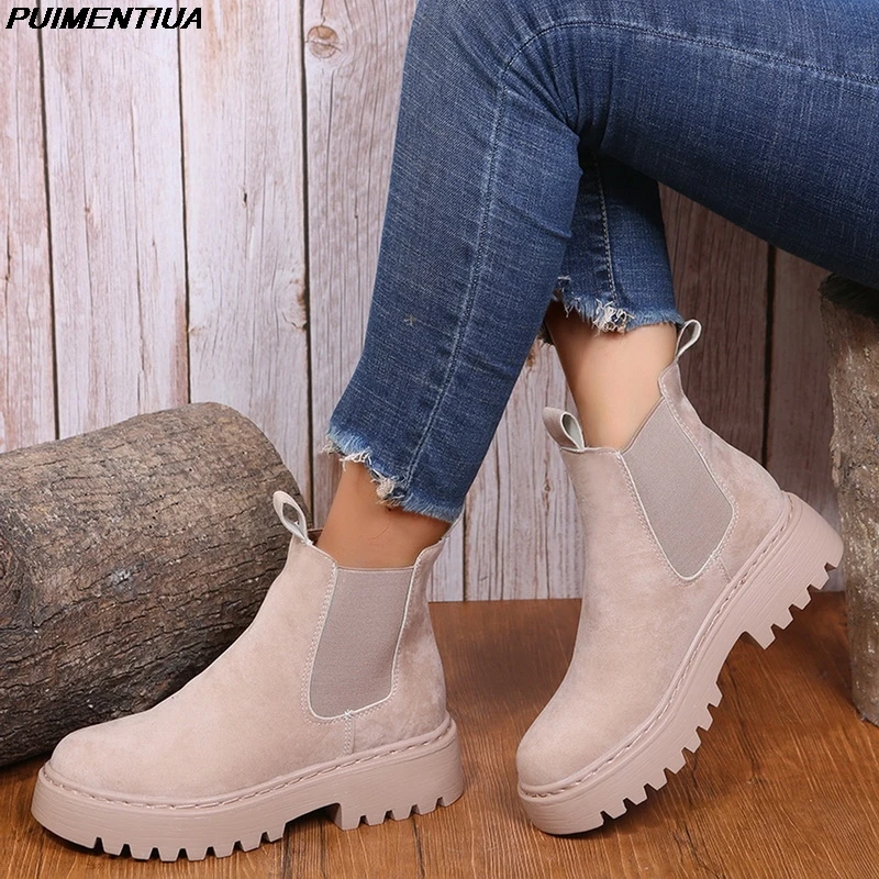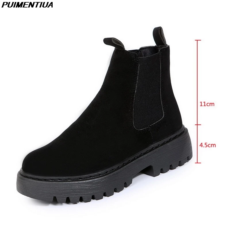 Женские зимние ботинки, замшевые кожаные ботильоны, женские ботинки челси на толстом каблуке и платформе с круглым носком, модные женские ботинки
