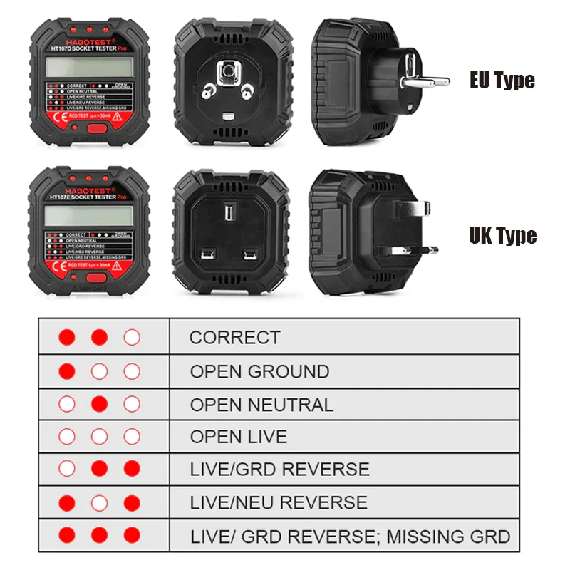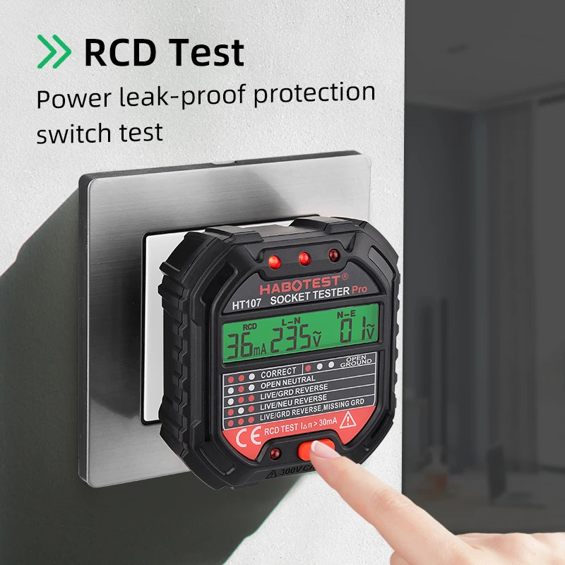 Умный тестер розеток HABOTEST, цифровой детектор розеток с европейской вилкой, 30 мА, с RCD HT107, с нулевой линией заземления