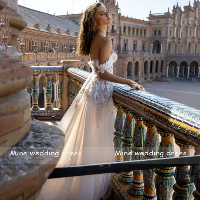 Женское кружевное свадебное платье-трапеция, привлекательное ТРАПЕЦИЕВИДНОЕ ПЛАТЬЕ из фатина с цветочной 3D аппликацией, модель 2022