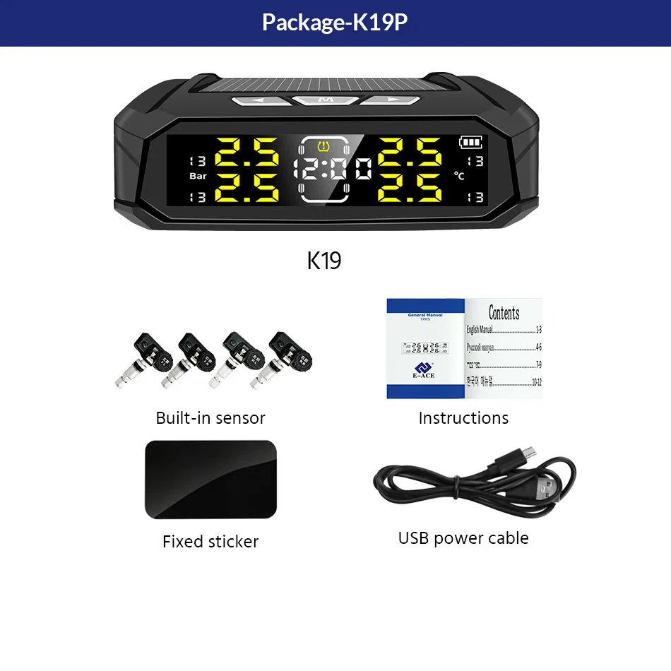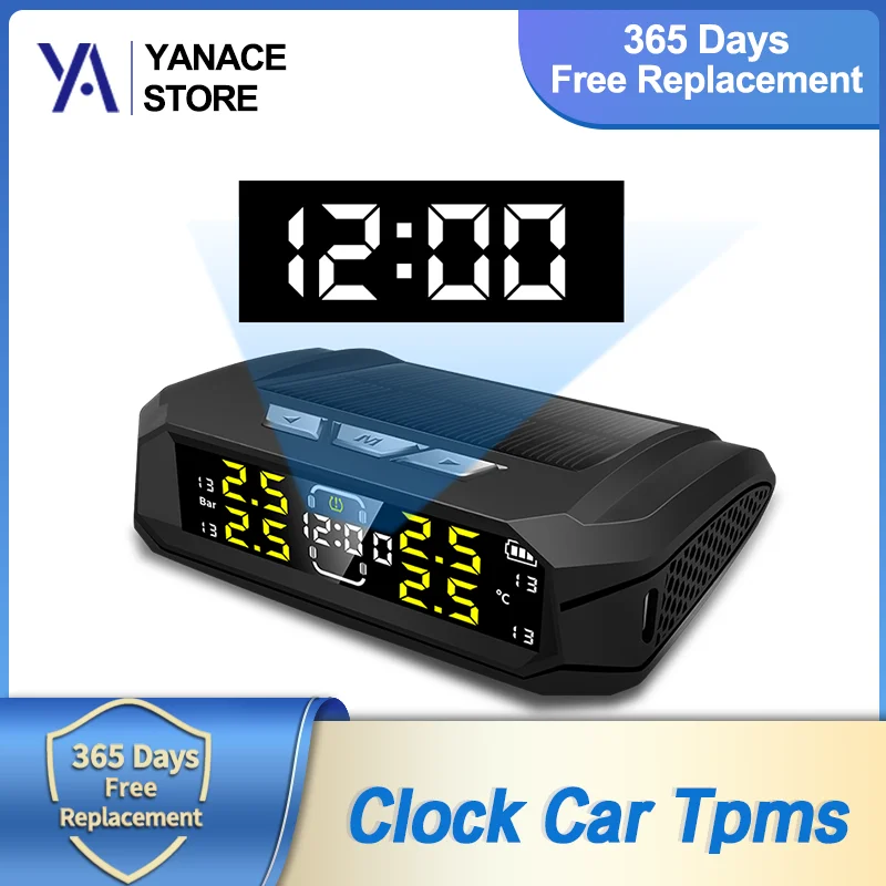 Система контроля давления в шинах Yanace K19, беспроводная система контроля давления в шинах с ЖК-дисплеем, 4 датчиками и часами
