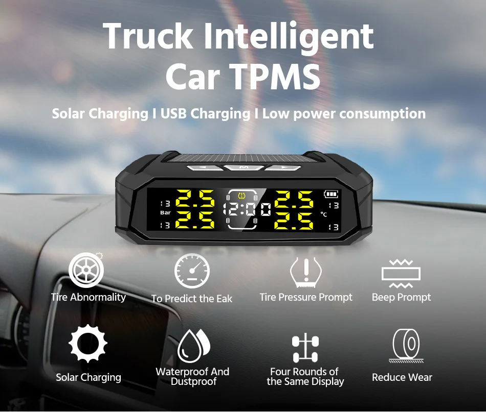 Интеллектуальное солнечное TPMS давление в автомобильных шинах. Точное раннее предупреждение, более безопасное вождение, более уверенное.