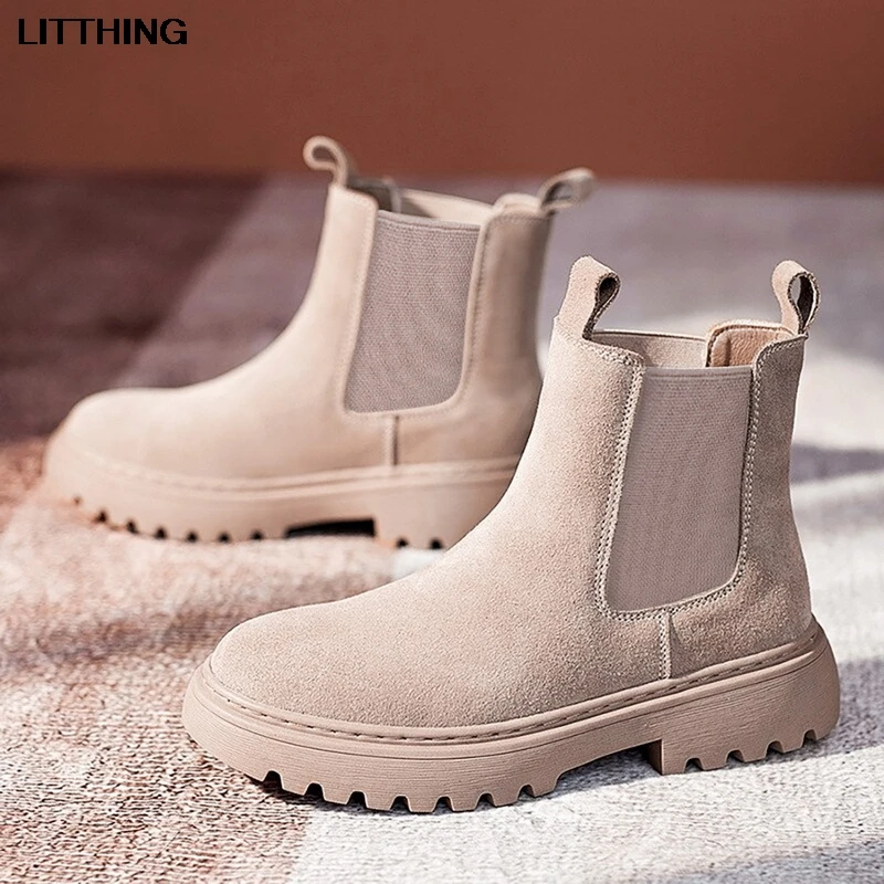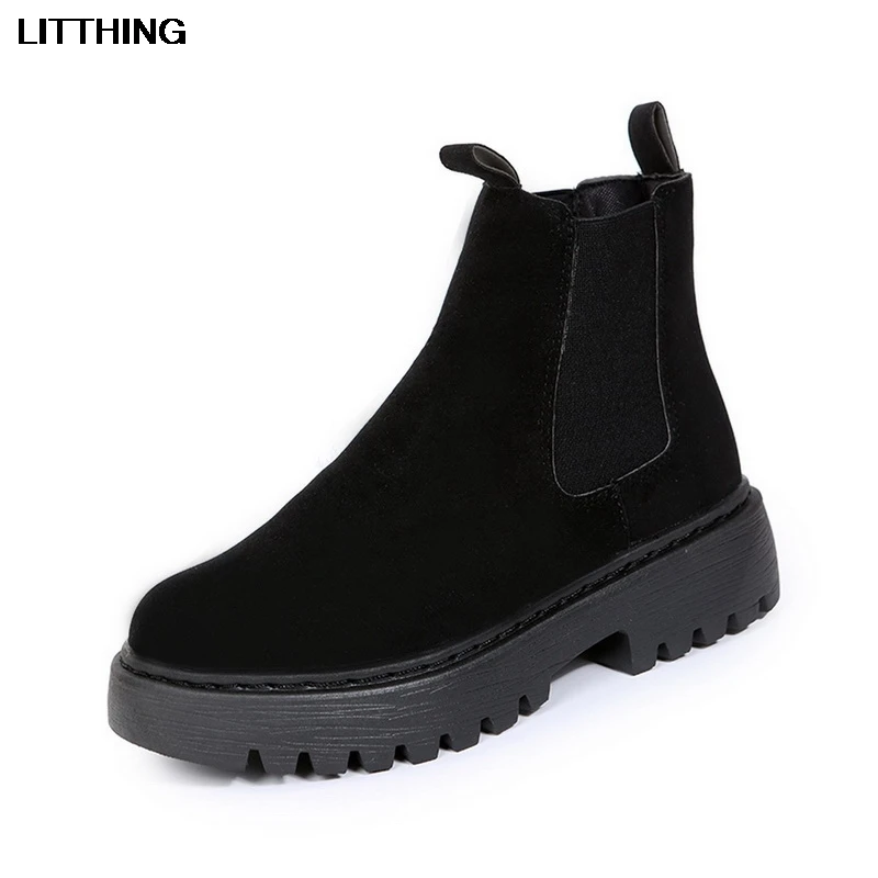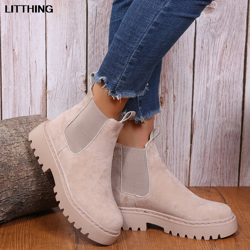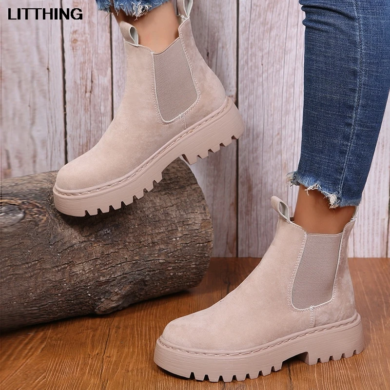 Женские замшевые ботинки-челси на платформе, без шнуровки