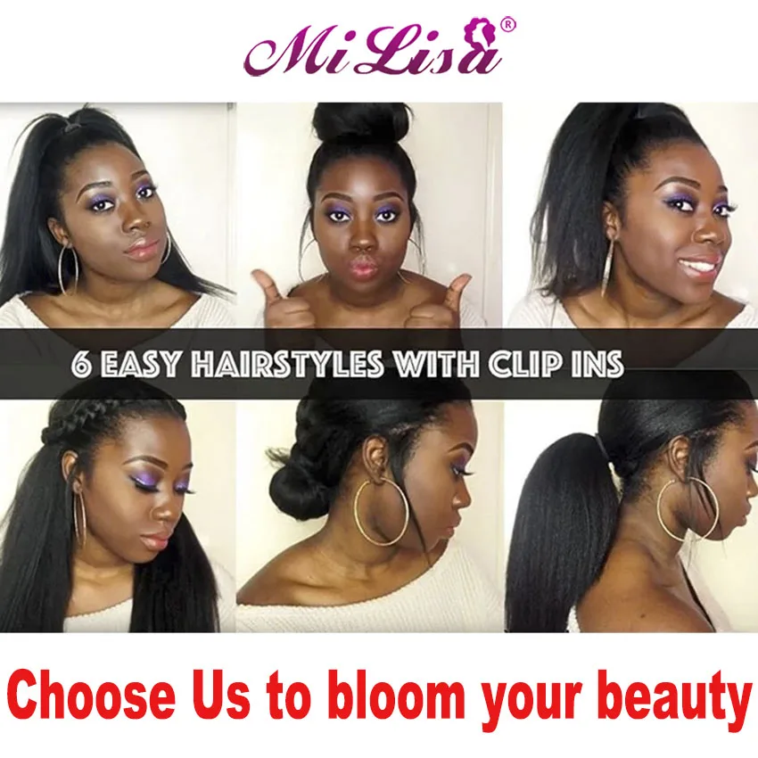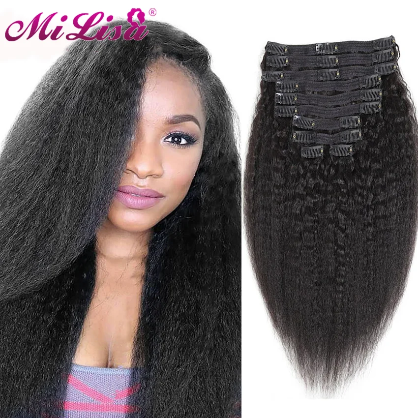 Кудрявые прямые волосы на заколках, человеческие волосы для наращивания, для черных женщин, бразильские волосы Remy, 10 шт./компл., волосы на заколках