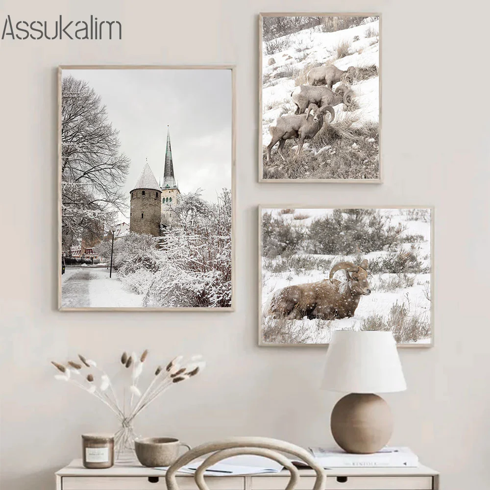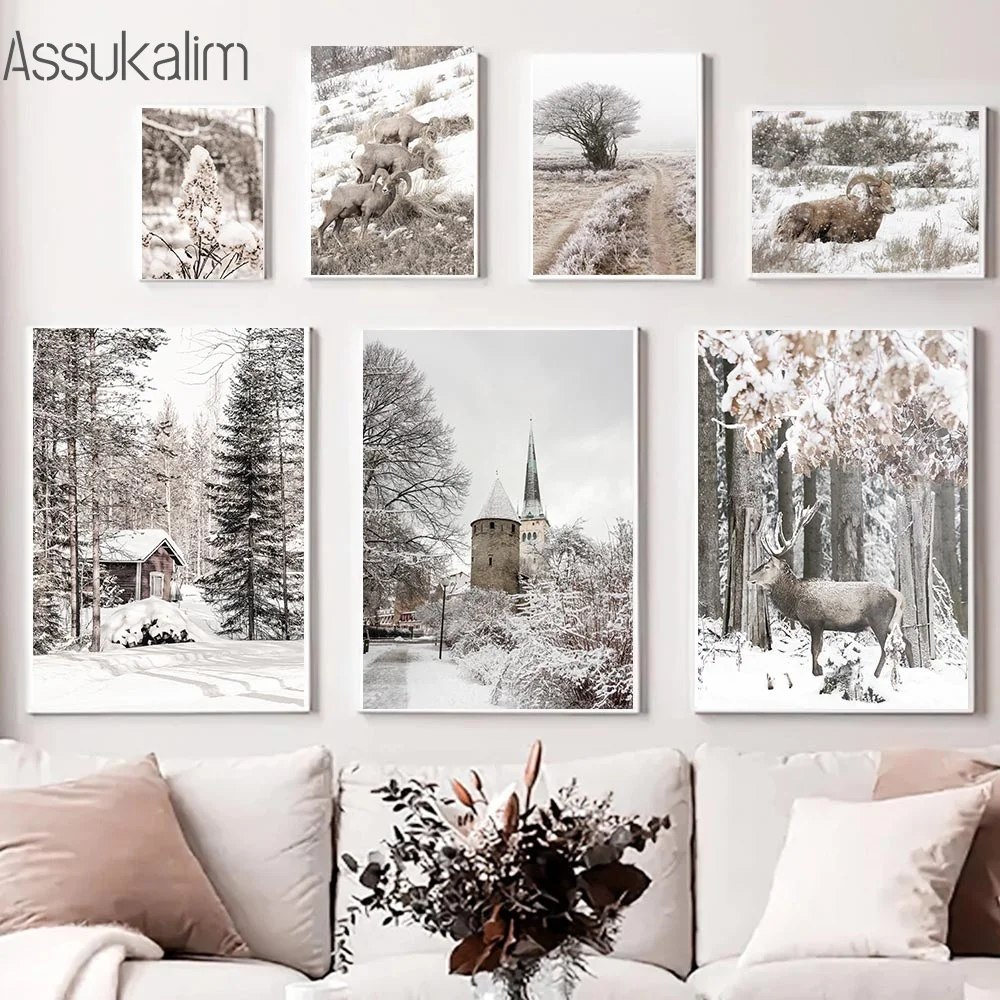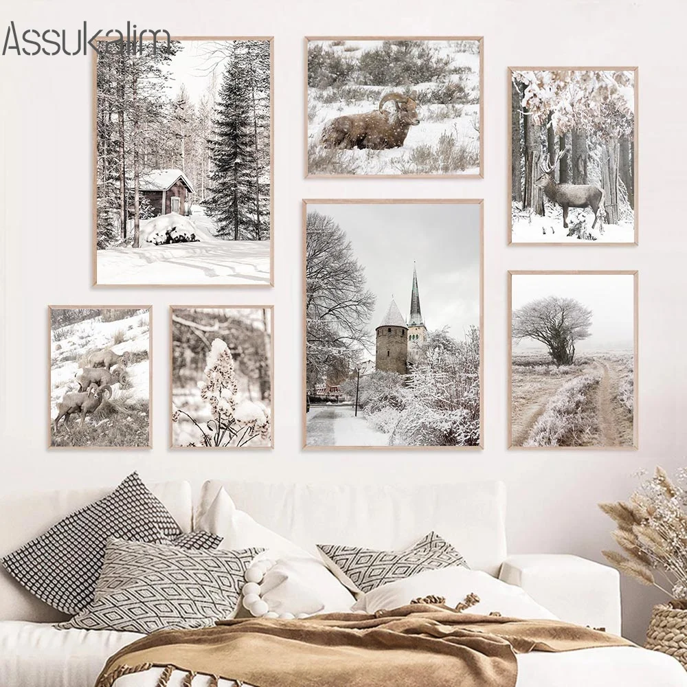 Зимний лес Снежный пейзаж настенный плакат плакаты с оленем пейзаж ...
