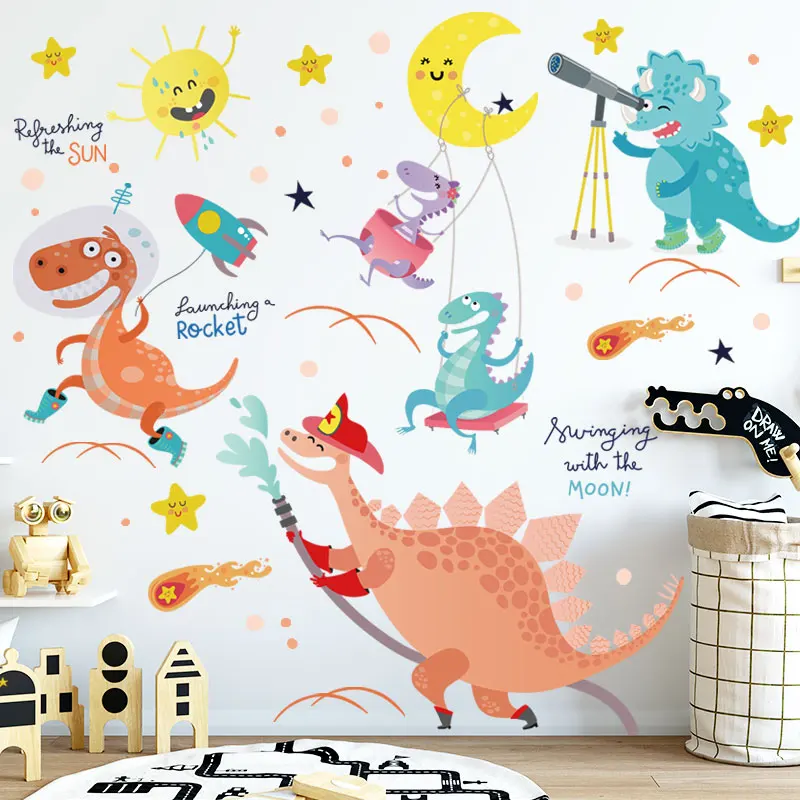 Самоклеящиеся наклейки с мультяшным Наклейка на стену динозавр и ми...