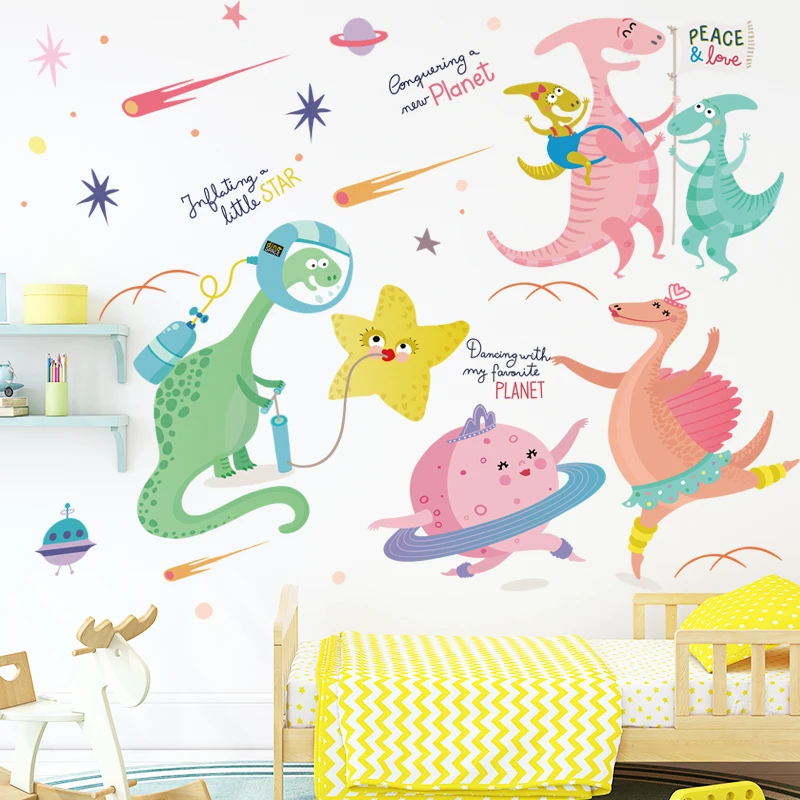 Мультяшные наклейки на стену Инопланетянин, динозавр для спальни, д...