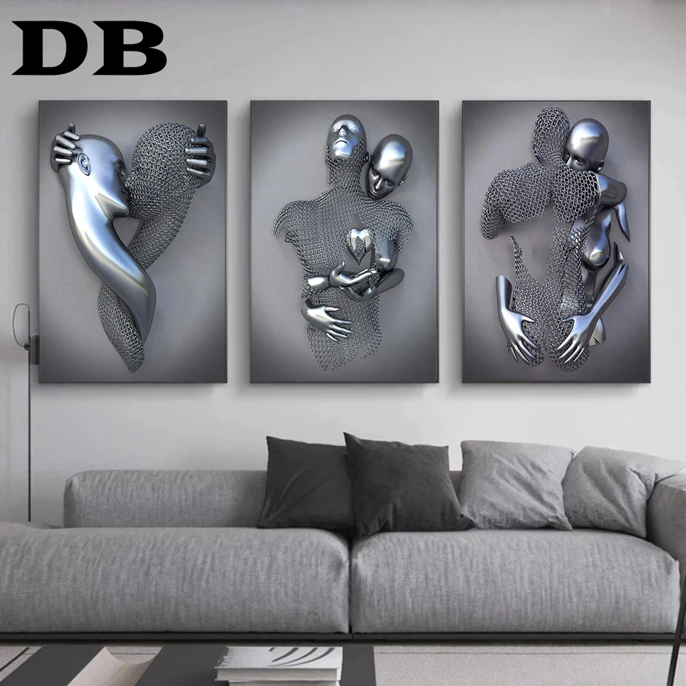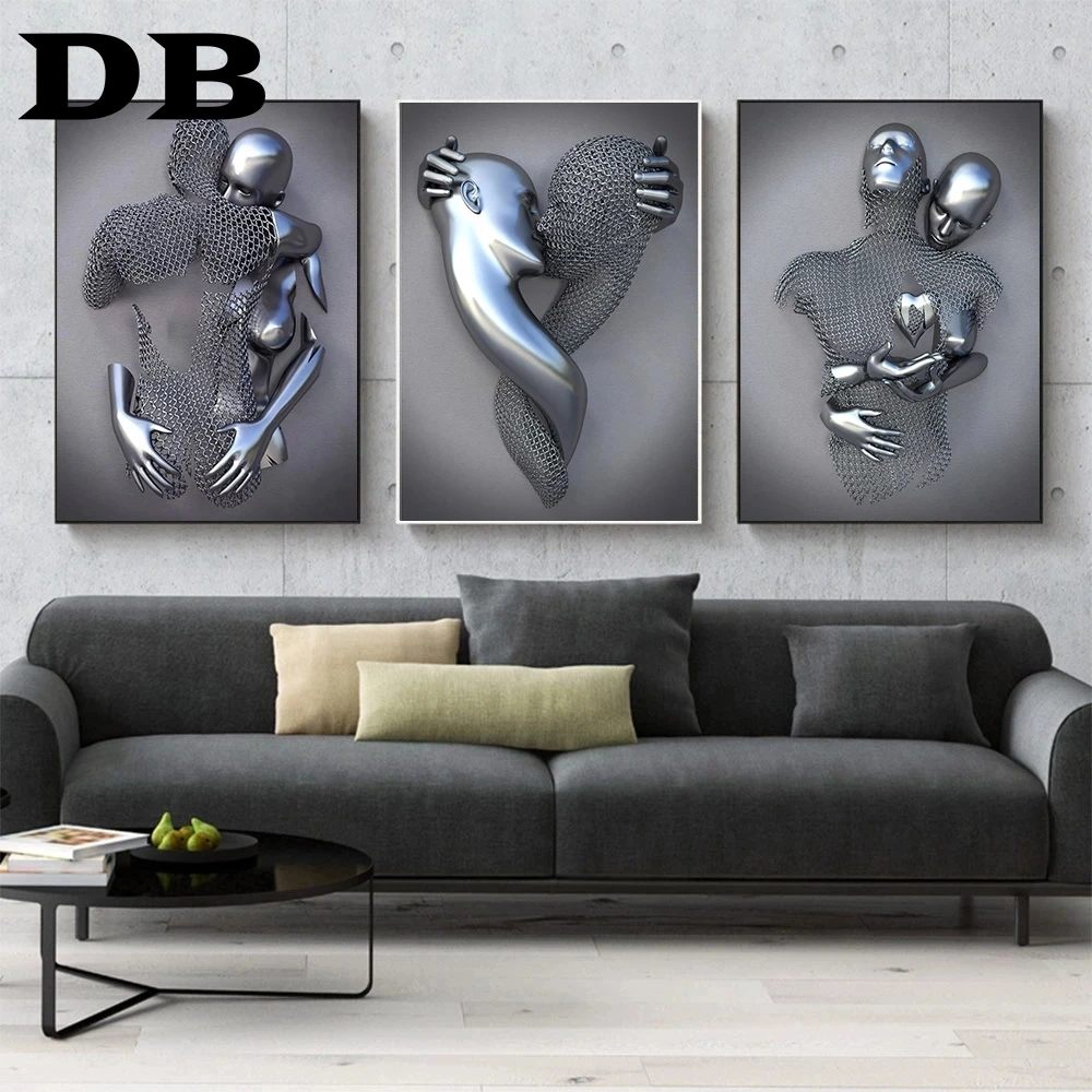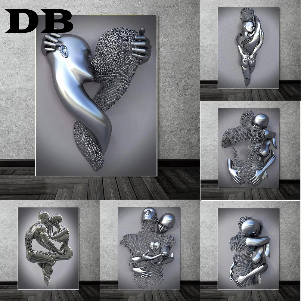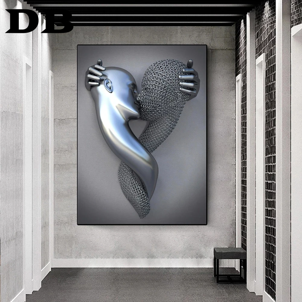 Металлическая Статуя, художественная холщовая картина, плакаты и принты, Современная Скульптура для влюбленных, настенные картины для гостиной, украшение для дома