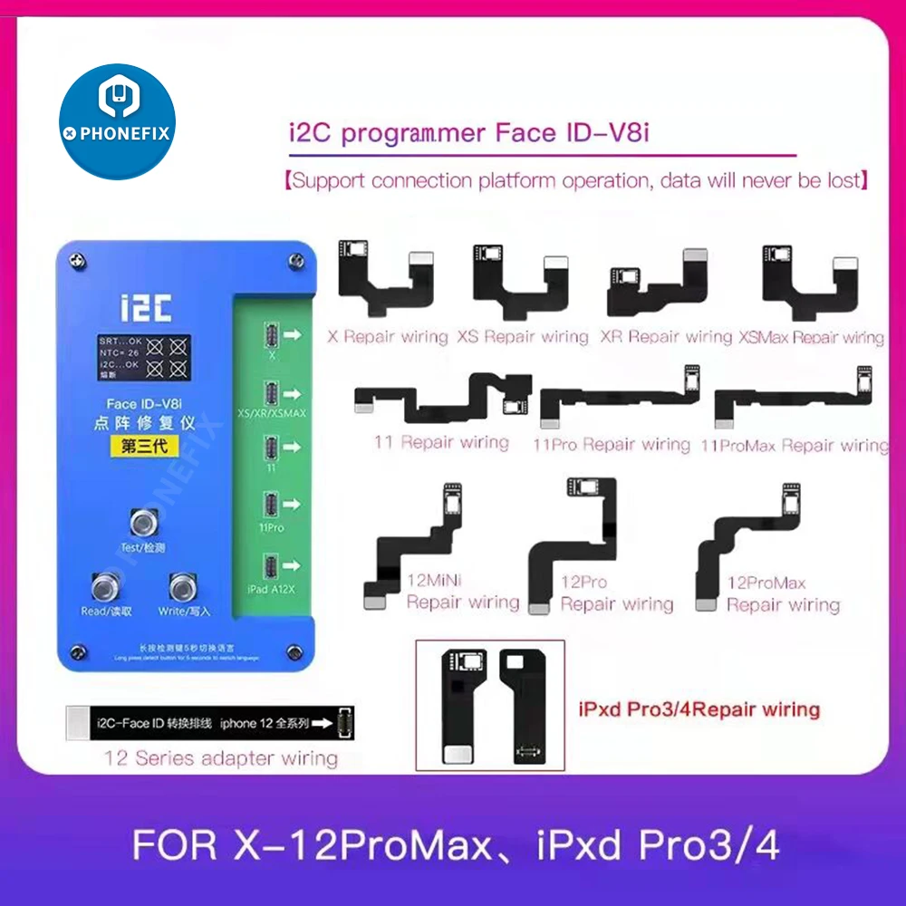Гибкий кабель I2C для iPhone X и iPhone 12 Pro Max, гибкий кабель для iPhone Dot Matrix для 3-го поколения i2C Face ID V8i, гибкий кабель для чтения и записи точечной матрицы от i2C V8i Face ID programmer, а затем ремонта iPhone Face ID выше и ниже проблемы путем замены гибкого кабеля.