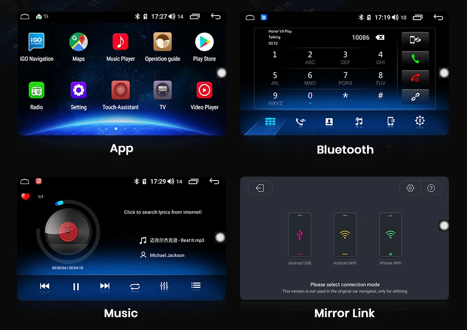 -Только для версии 4 Гб + 64 ГБЭтот DVD обеспечивает usb-разъем, который поддерживает подключение к телефону, легко управлять и обрабатывать Iphone через устройство. Он называется ZLINK в системе.