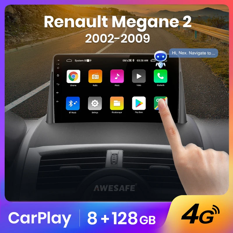 Автомагнитола AWESAFE PX9 для Renault Megane 2 2002-2009, мультимедийный проигрыватель с GPS, автомагнитола 2DIN на Android, Авторадио 8 + 128 ГБ