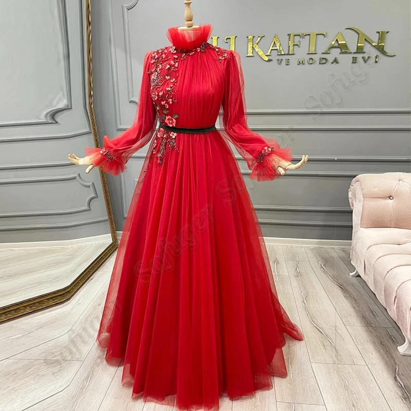 Женское вечернее платье, готическое красное платье с цветочной аппликацией, для выпускного вечера