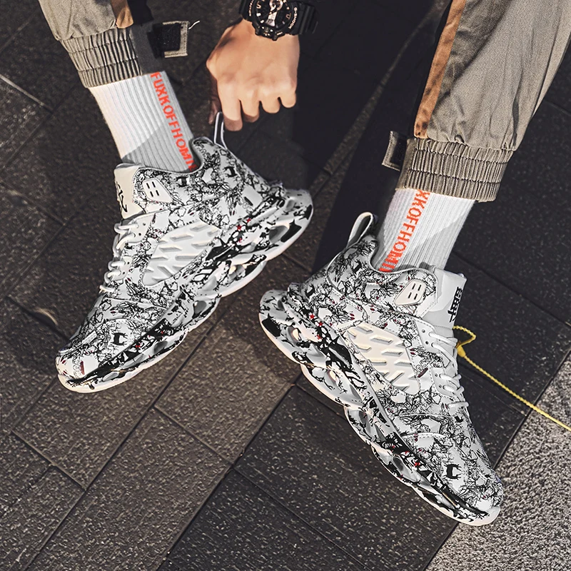 Мужские модные кроссовки с граффити; Дышащие кроссовки для бега; Ос...