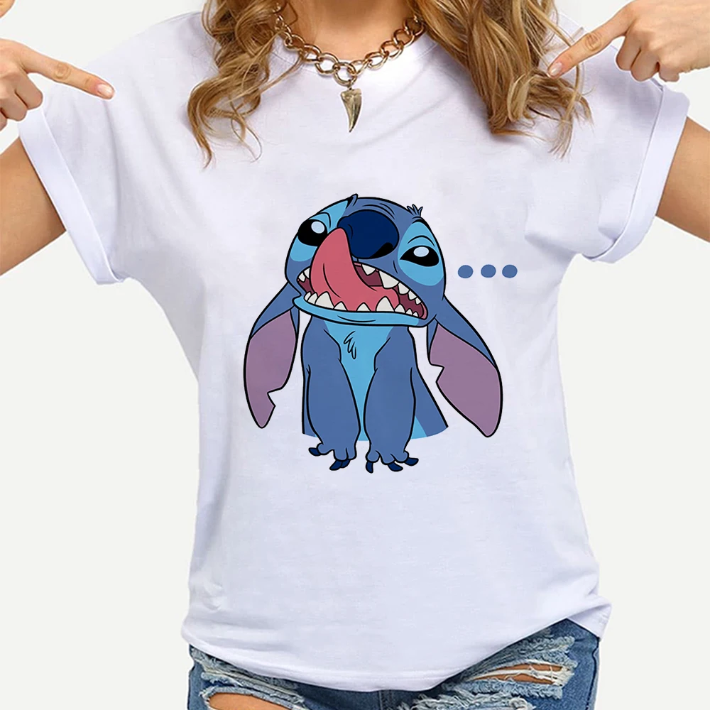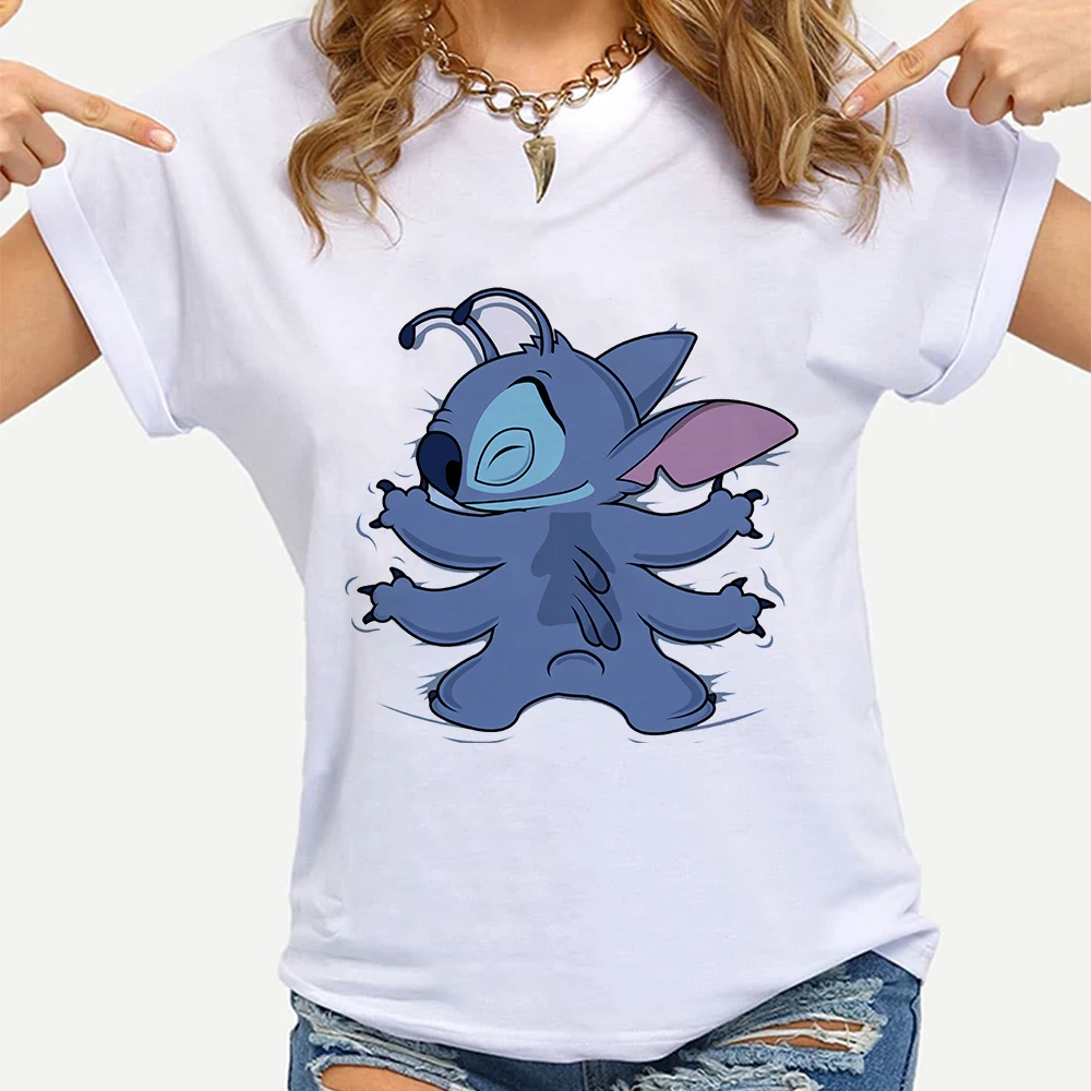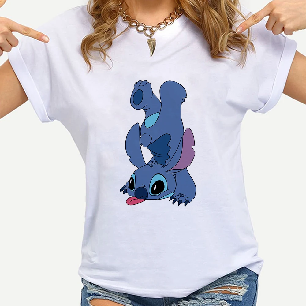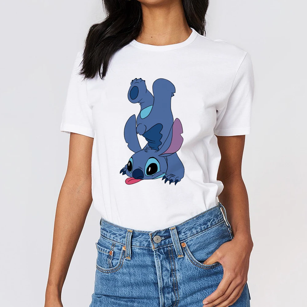 Топ женский с забавным мультяшным принтом Лило и Стич графическая Футболка Повседневная футболка для взрослых летняя уличная женская футболка с коротким рукавом