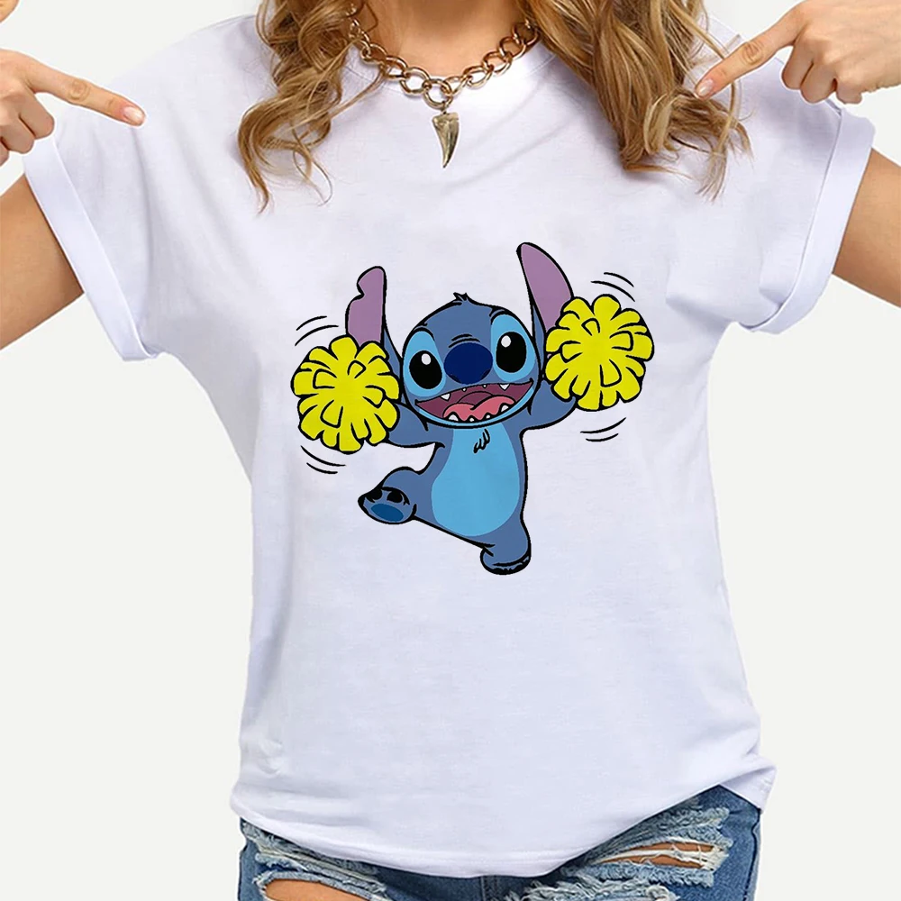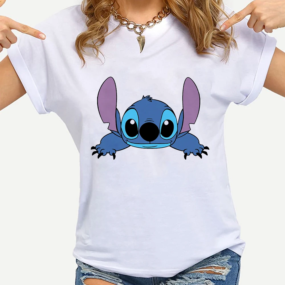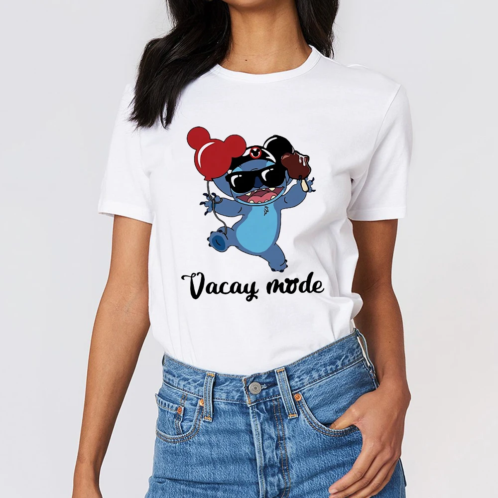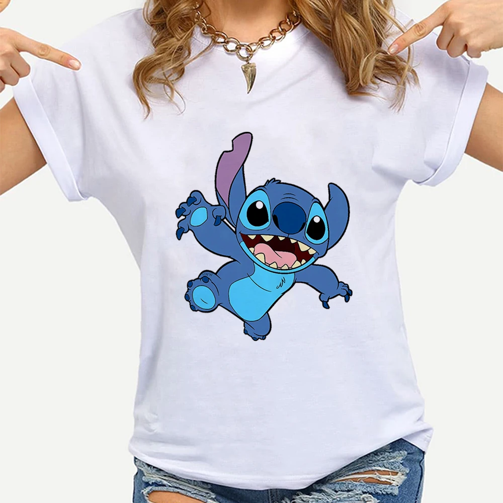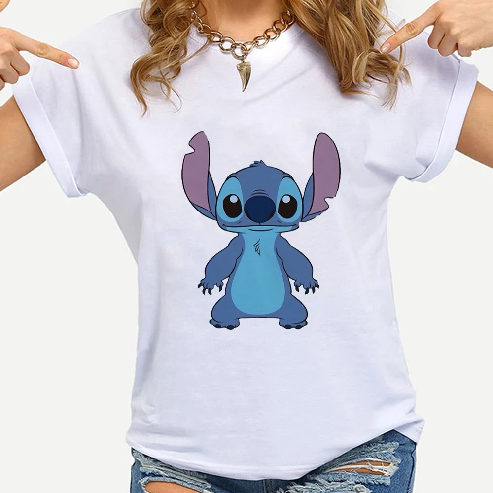 Топ женский с забавным мультяшным принтом Лило и Стич графическая Футболка Повседневная футболка для взрослых летняя уличная женская футболка с коротким рукавом