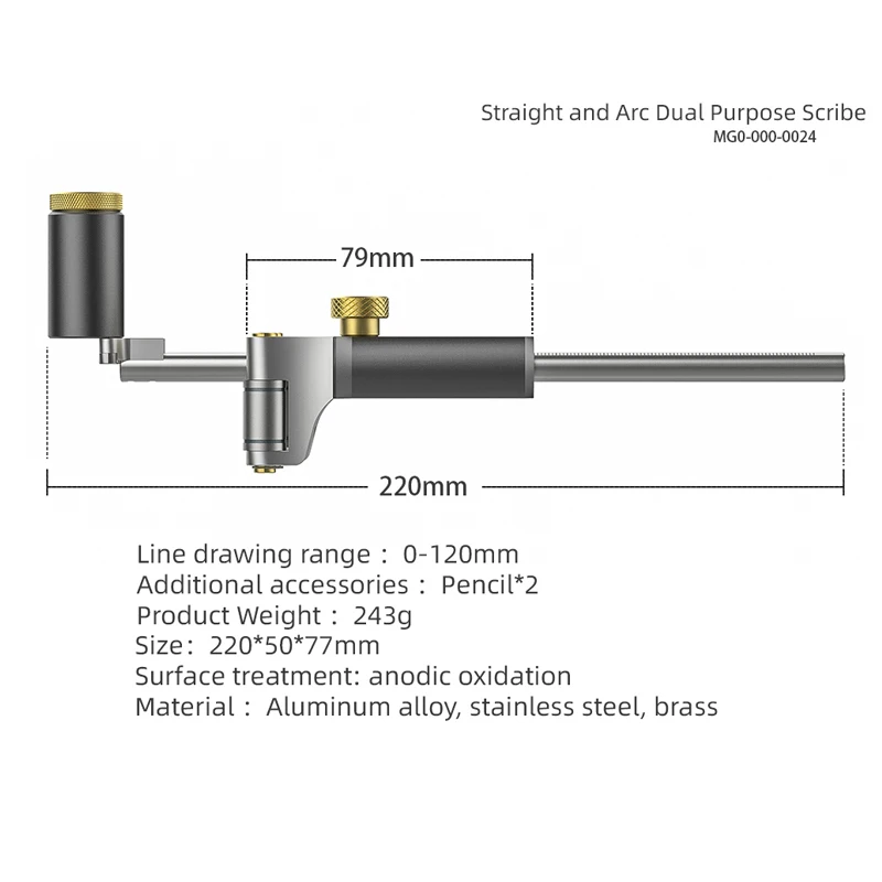6. Линейная дуга двойного назначения: scribe имеет ролик из нержавеющей стали, без мертвого вала, он может нарисовать круг вместо рисования параллельных линий. 7. Эргономичный дизайн: корпус из алюминиевого сплава, обработка поверхности, высокая твердость полимера, удобная ручка, устойчивость к истиранию, устойчивость к царапинам и долговечность. 8. Широкий диапазон применения: он используется для различных материалов, таких как керамика, железо, акрил, дерево, стекло и т. д., чтобы сделать вашу работу проще.