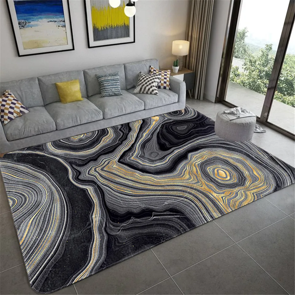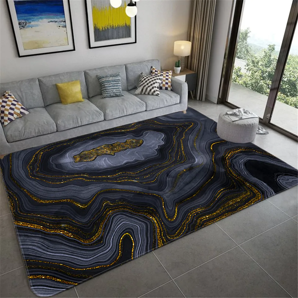 Современные роскошные ковры с черным золотым мрамором для гостиной, спальни, большие коврики, зеленый геометрический 3D коврик с принтом, Домашний напольный коврик
