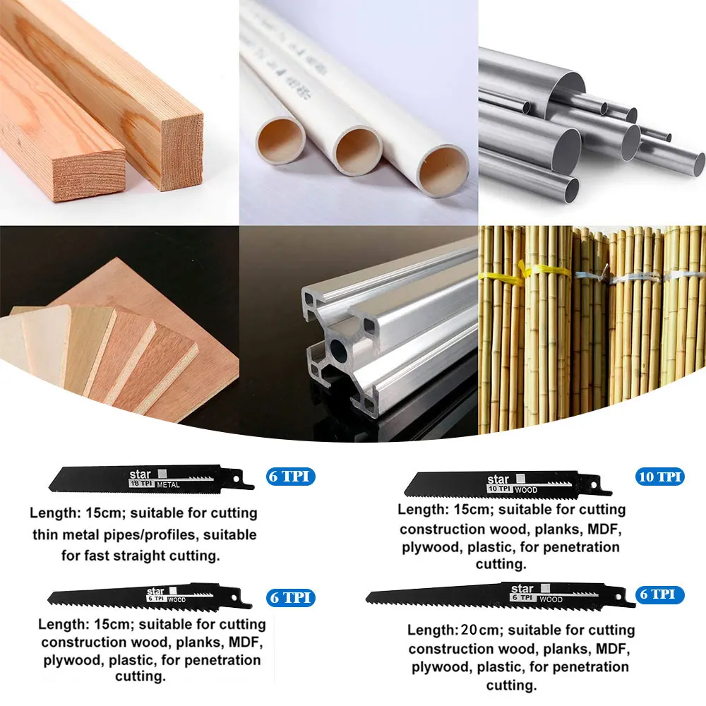 Suitable for cutting materialsWood/PVC/Lron pipe/Suitable cutting material: wood. PVC.Iron Pipe/Branch