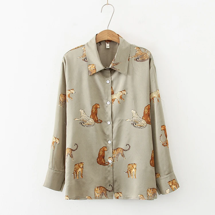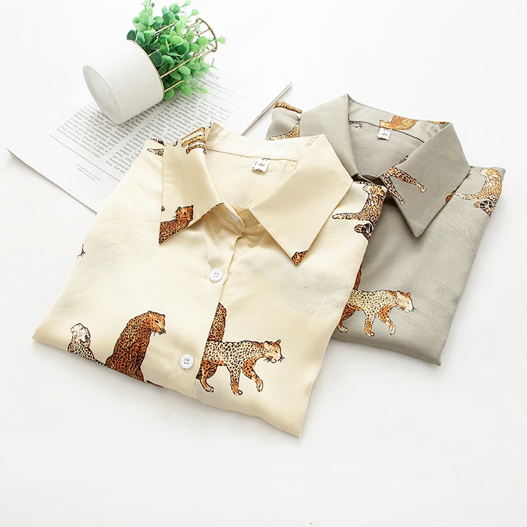 Женская блузка с леопардовым принтом, весна-осень 2021
