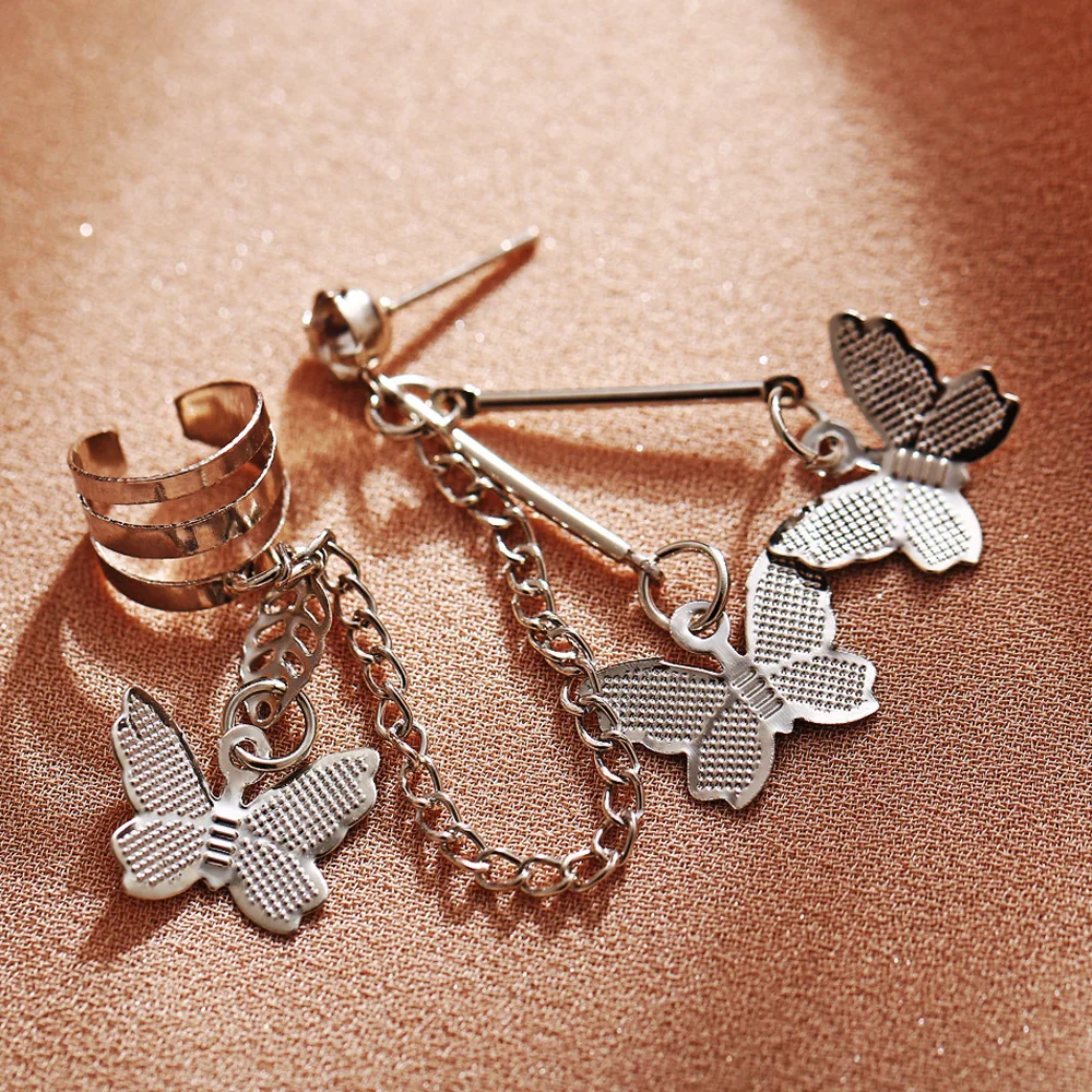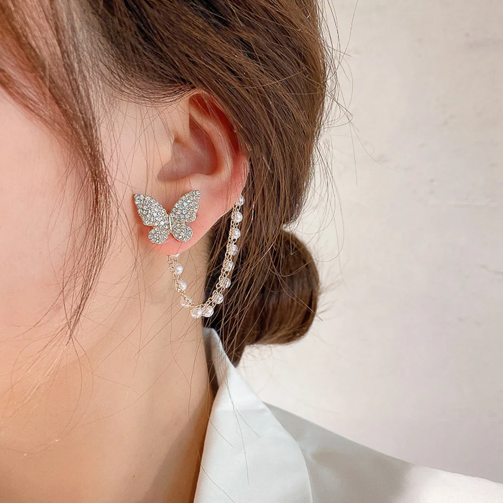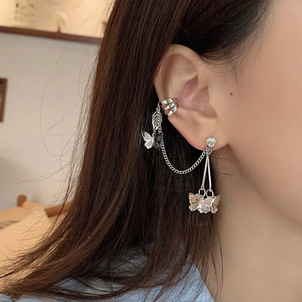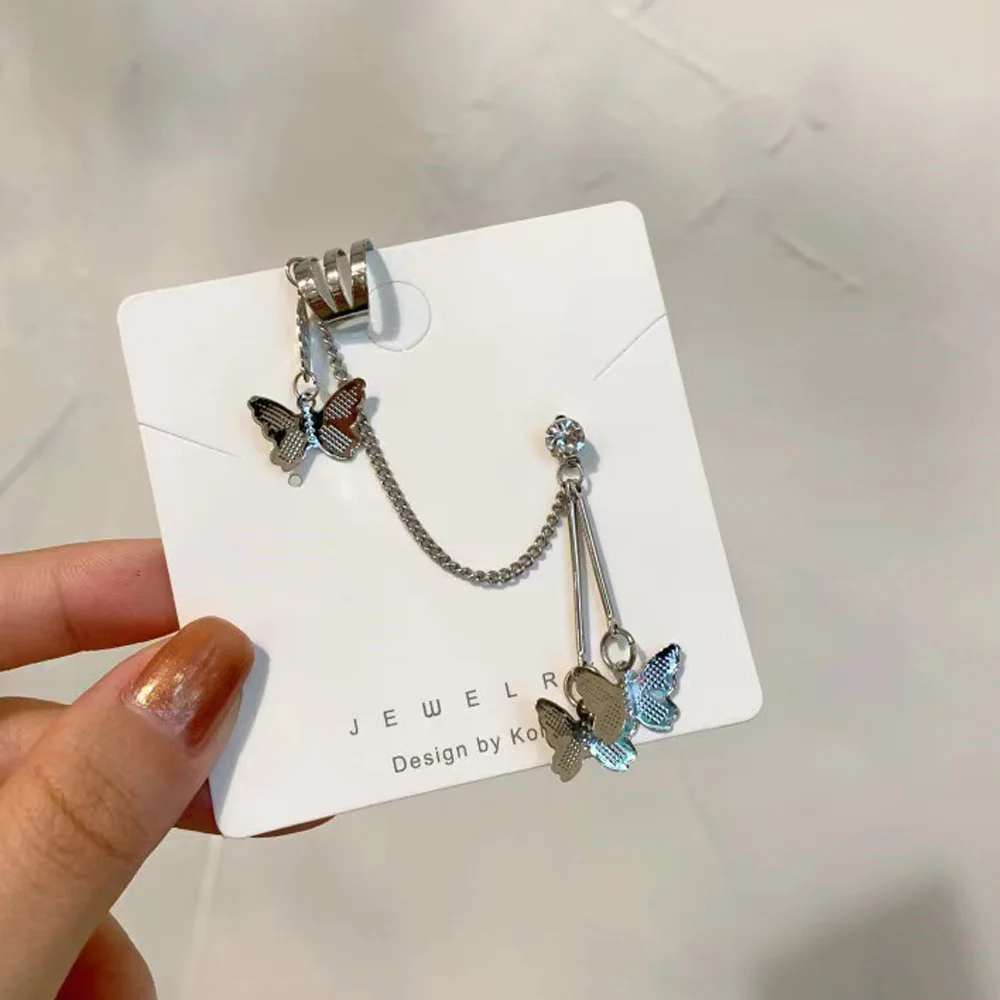 Новые модные серьги-клипсы золотого цвета с бабочкой корейские кристаллы животные Луна Звезда шип без пирсинга серьги-каффы женские серьги-Каффы