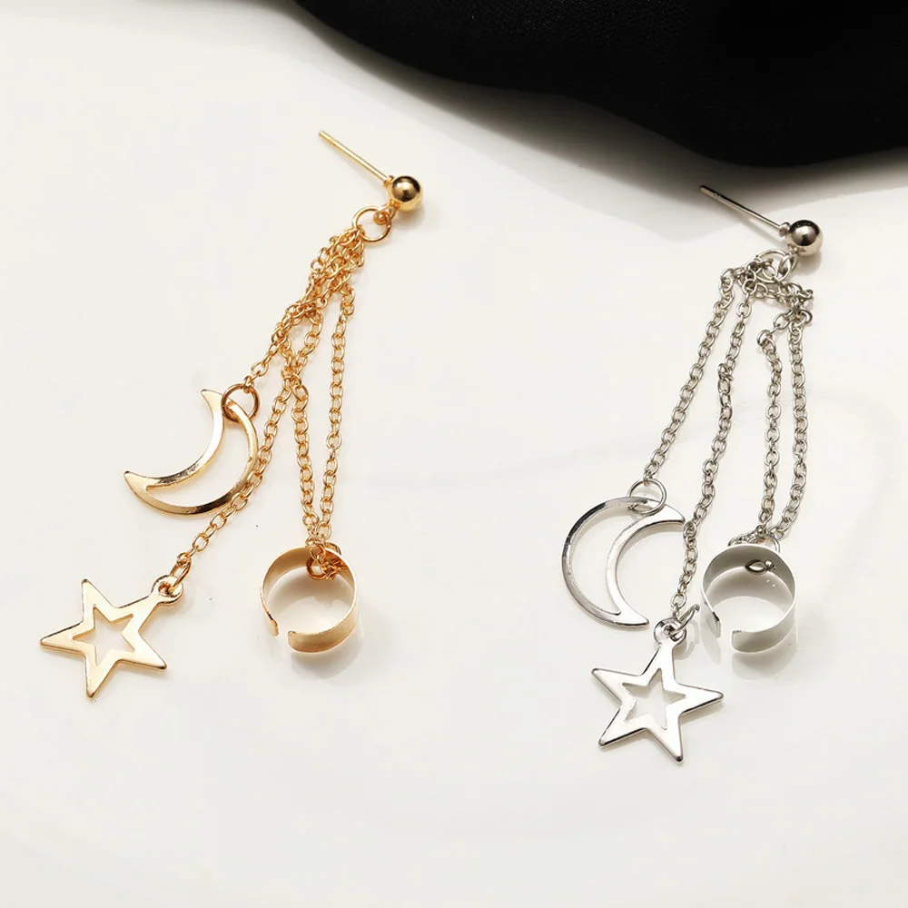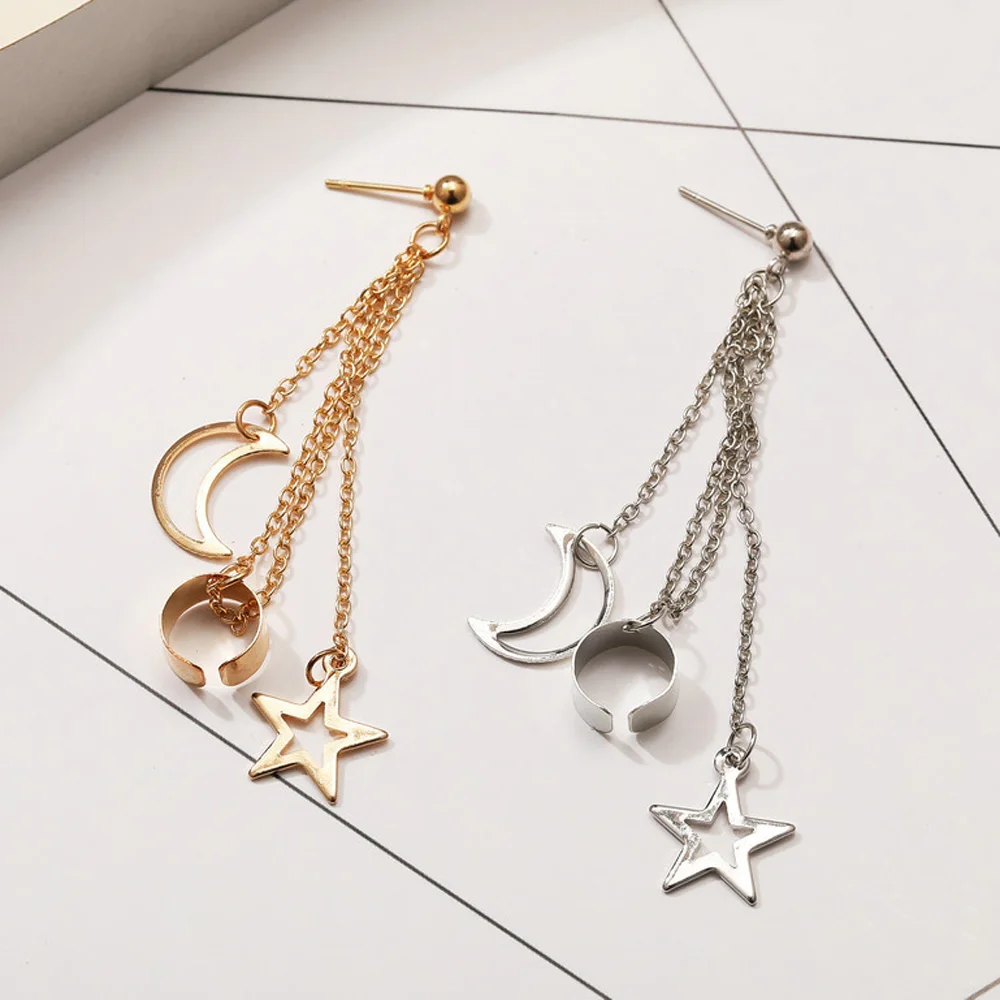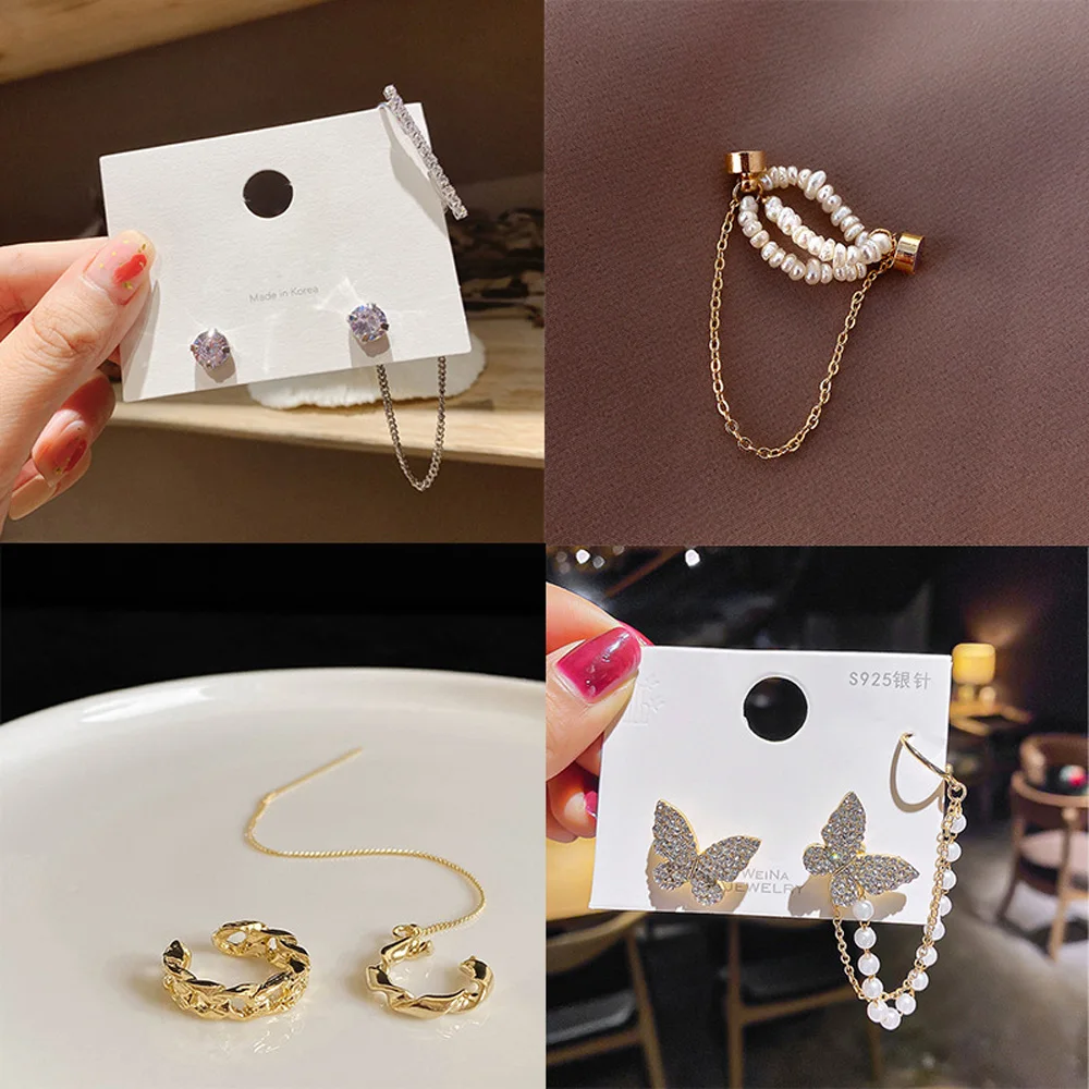 Новые модные серьги золотистого цвета с застежкой-бабочкой, корейские Кристальные серьги в виде животных, луна, звезда, Спайк, без пирсинга, женские серьги-манжеты