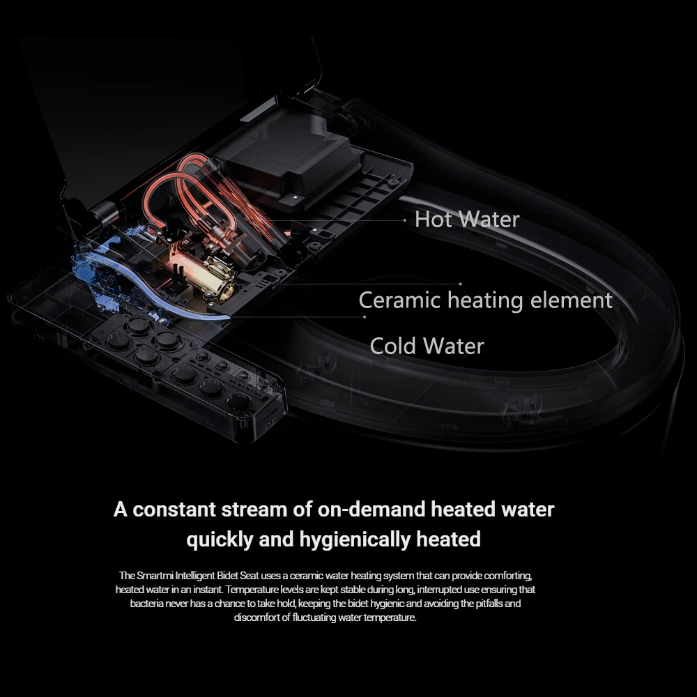 1. Описание:Smartmi электронное биде сиденье для унитаза с очищающей водой/подогреваемым сиденьем/УФ стерилизация/светодиодный ночной медленный закрывающийся автоматический умный чехол для унитаза 220 В2. Особенности:● Мгновенный постоянный нагрев горячей воды уютный флешГигиенический керамический нагревательный элемент с постоянной температурой горячей воды.● Удобная женственная очисткиС одной насадкой на боковой ободке для очистки ануса и гениталий, помогая женщинам легко очистить свою вульву и сохранить здоровье даже в период менструации.● 4-ступенчатая сиденье Регулируемая температура воды/под давлением-Легко настроить оптимальную температуру воды, температуру сиденья и давление стирки.-Когда садитесь, вставленный датчик определяет пользователя сидящего на сиденье унитаза и автоматически отключает температуру, избегая сжигания кожи.● Холодный и горячий массаж полоскание, не нужно чистить, но более чище-Удобный холодный горячий массаж может повысить местное кровообращение. До 4 передач температура воды, регулирование давления воды и возвратно-поступательная функция стирки, позволит вам быть более комфортным и чистым.-Холодная вода и горячая вода массируют ваше тело по поворотам, чтобы расслабить кожу и улучшить частичное кровообращение.● Стирка в бедрах вперед и назадНажмите кнопку «мытье бедер» снова, насадка будет двигаться вперед и назад постоянно, чтобы расширить область стирки, улучшая эффект очистки.● Модернизированный фильтр и фильтрующий элементПо сравнению со старой версией, Модернизированный ПП фильтр хлопок может эффективно фильтровать примеси выше 5 микрон для лучшего фильтрующего эффекта и более здорового использования. Замена фильтрующего элемента проще и удобнее.● Двойная самоочищающаяся насадка/УФ-стерилизацияПеред стиркой кольцевой поток тщательно очистит сопло УФ-светом, автоматически убивая бактерии на сопле, когда пользователь находится вдали от сиденья унитаза.● Внимательное светодиодное ночное освещениеУдобно для ночного использования, не беспокоя вашу семью.● Полный корпус IPX4 водонепроницаемый, Полностью безопасный, крышка сиденья медленно внизПри аварийной утечке электричества, вилка автоматически выключится, предотвращает падение кольца сиденья быстро с жестким звуком. Брызгозащищенный во всем диапазоне, безопасный и надежный для ежедневного использования.● Высококачественный полипропиленовый антибактериальный материалКрышка унитаза изготовлена из антибактериального ПП материала, который может эффективно подавлять рост и размножение бактерий, и идеально подходит для семейного использования.Подходящие виды:1, бак для воды вертикальный2, бак для воды снаружи выпуклый3. Встроенный резервуар для воды3. Технические характеристики:Бренд: miНоминальное напряжение: 220 В, 50 Гц (вилка CN с 3 контактами, и-Адаптер для розеток европейского стандарта прилагается)Номинальная мощность: 1340 ВтМаксимальная мощность: 1500 ВтТип нагрева: Мгновенный нагревТемпература подачи воды: 4 - 40 градусов CДиапазон давления воды: 0,08-0,75 МПаКласс водонепроницаемости: IPX4Примечание: данные проверены в соответствии с условиями: 15 градусов. C температура на входе воды, 39 градусов. C температура на выходе воды (макс.), 800 мл/мин. поток воды (макс.)Особенность: светодиодный ночникДругие функции: Женск