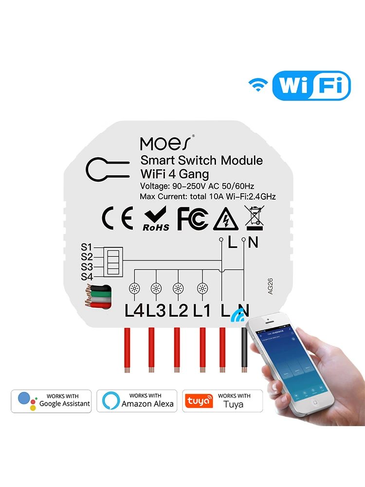 1. Умный модуль Wi-Fi 4 Gang поставляется с мини-дизайном для 4 переключателей в соответствии с британскими и европейскими настенными переключателями; Компактный размер позволяет легко поместиться без изменений в вашем домашнем декоре; превращает совместимые продукты в умные за считанные секунды; Позволяет независимое управление традиционным переключателем без помех; Подходит для перезапуска и сброса переключателя.
