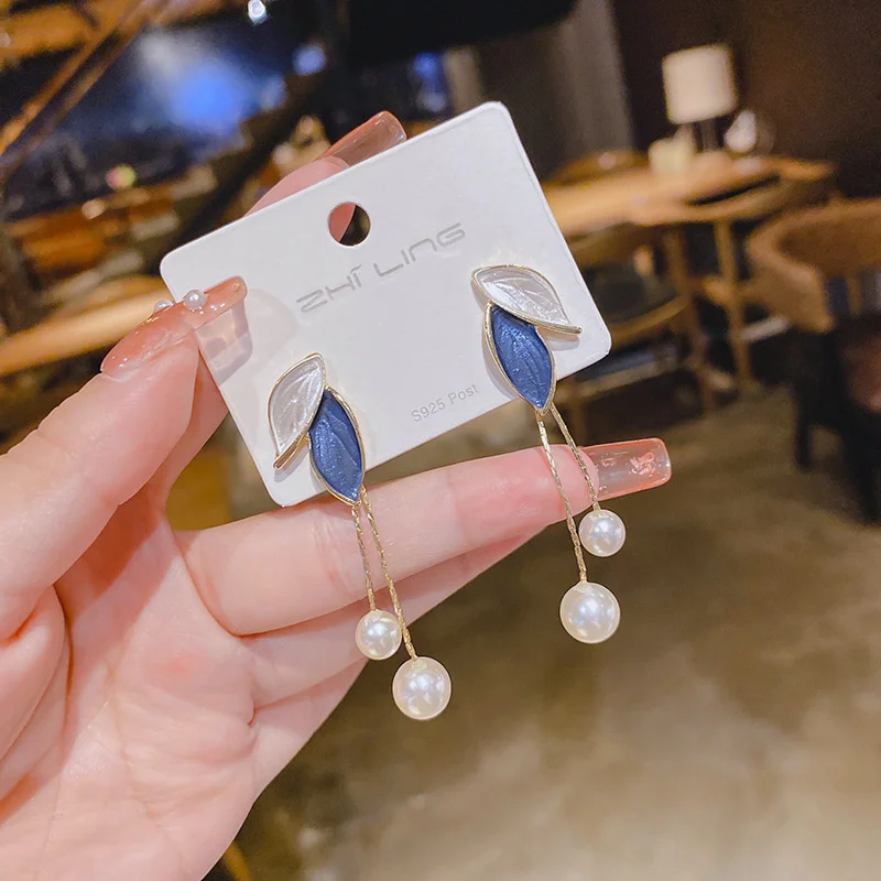 Серьги-клипсы женские, длинные, с жемчугом, на цепочке, 2021