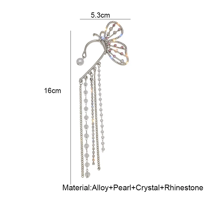 1 шт. модные хрустальные Клипсы-бабочки, серьги, жемчужные бусины, ушные манжеты, длинные кисточки, очаровательные полые серьги для женщин, девушек, ювелирные изделия, подарок