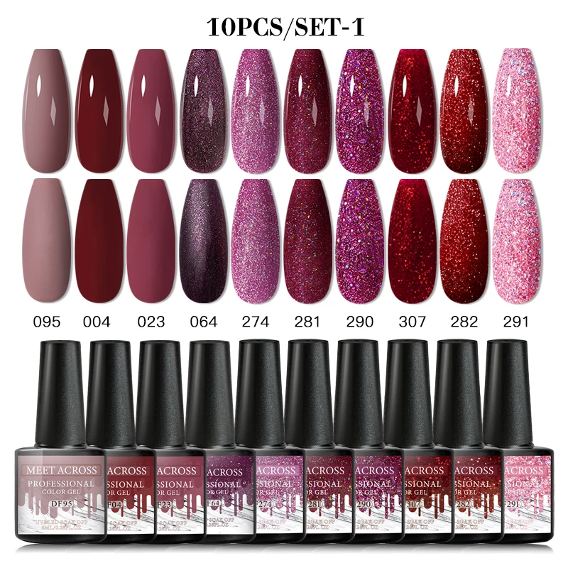 Встретить через 1012 шт набор гель-лаков для ногтей телесный гель для ногтей с блестками Полупостоянный Гибридный лак Набор ногтей для маникюра Базовый Топ пальто