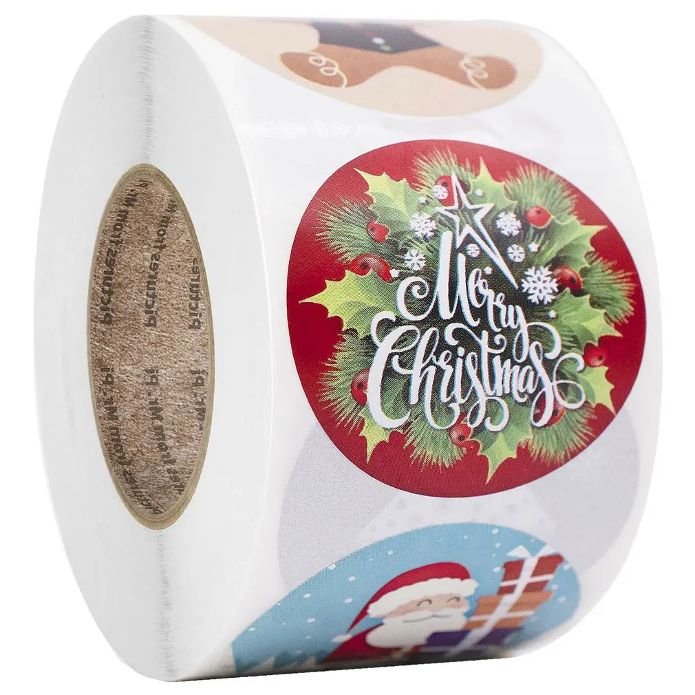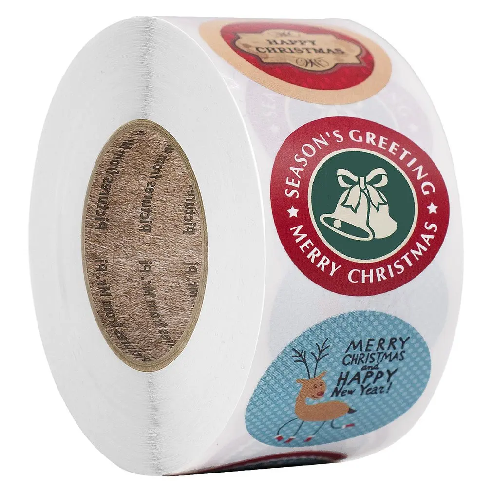 1 рулон рождественских наклеек, 500 шт., декоративные наклейки с животными, снеговиками, деревьями, декоративная наклейка для упаковки новогодних подарков, этикетка, рождественские бирки