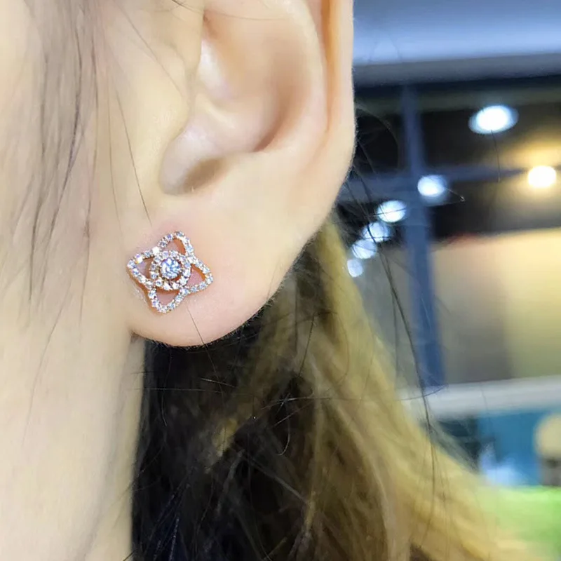 Модные геометрические серьги в уличном стиле со звездой и цветком, медные серьги с изысканным цирконием и бриллиантами
