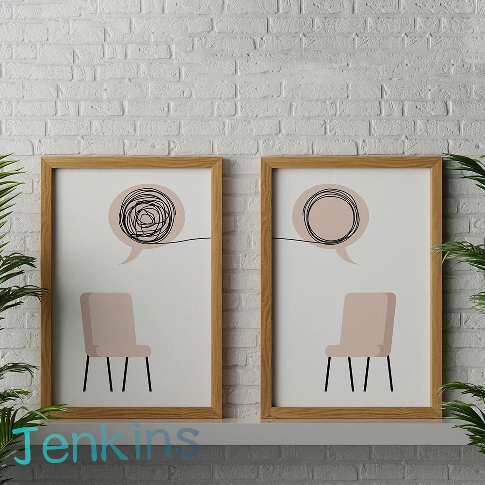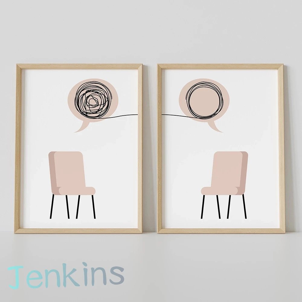 Настенный постер бежевого цвета с изображением стула, цифровая печа...