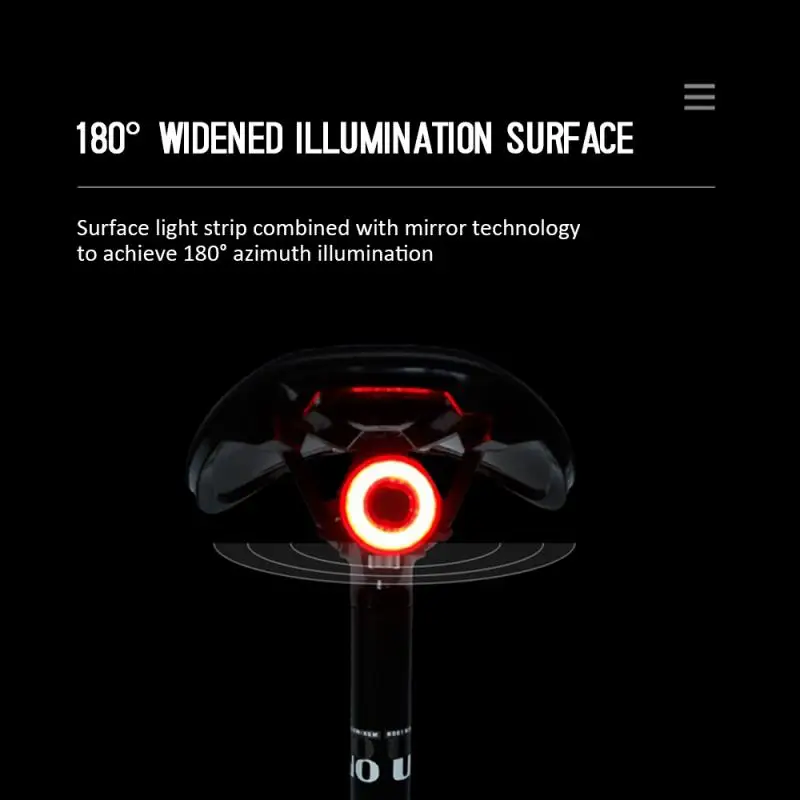 Задний светодиодный фонарь MEROCA для горного велосипеда, перезаряжаемый Интеллектуальный стоп-сигнал, предупреждающий фонарь, водонепроницаемость IPX6