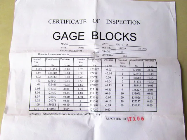 Блок калибра 32 шт.компл. 1 класс 0 Калибр блока калибра контрольны...