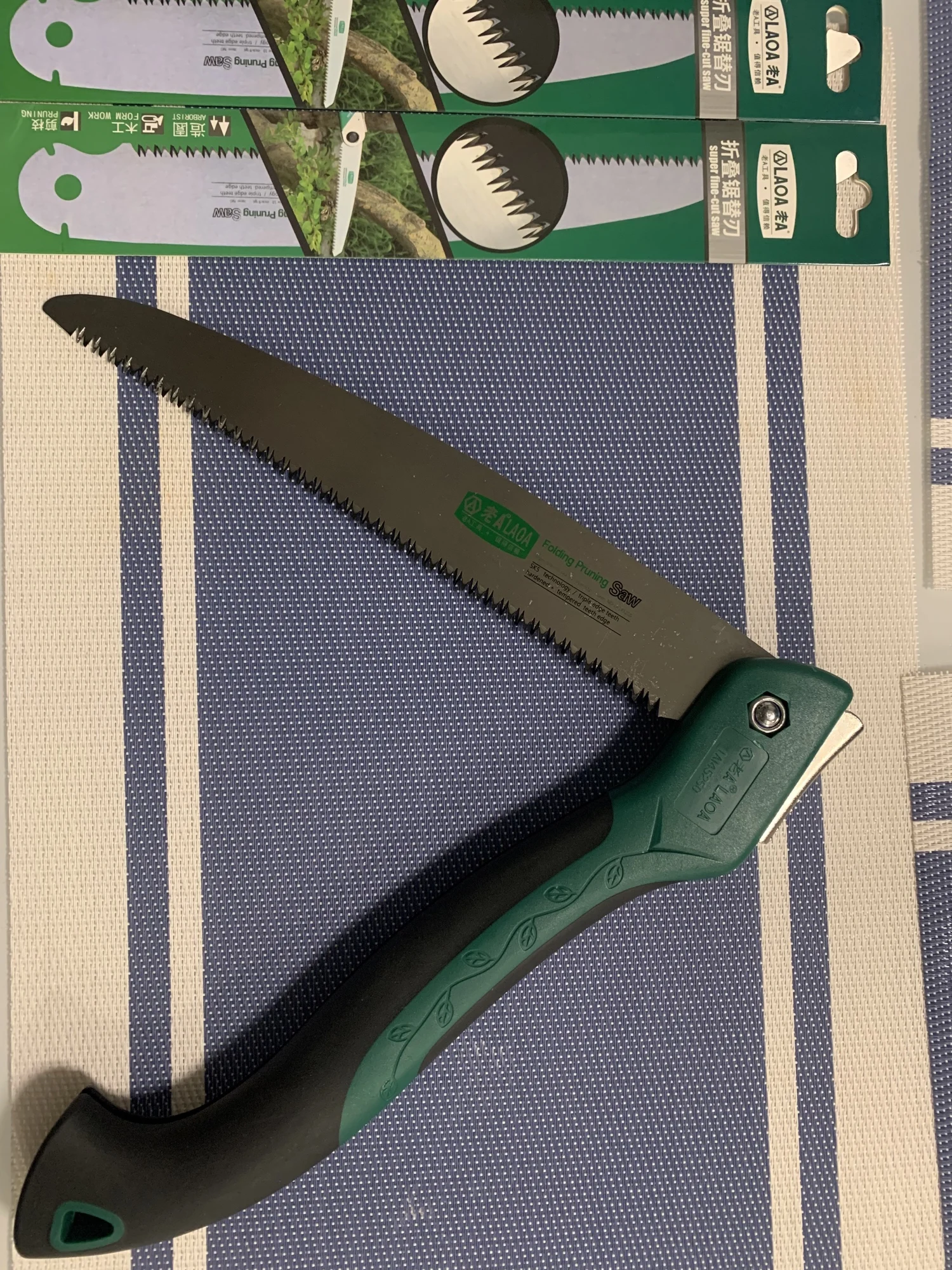 Пила понравилась. Два фиксируемых положения - сложена и рабочее. Полотна легко меняются