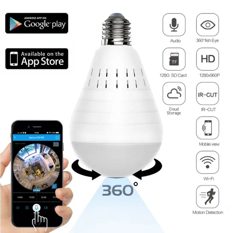 Панорамная камера с лампочкой E27, 960P, Wi-Fi, 360 градусов, рыбий глаз, беспроводная камера видеонаблюдения для дома, HD IP-камера