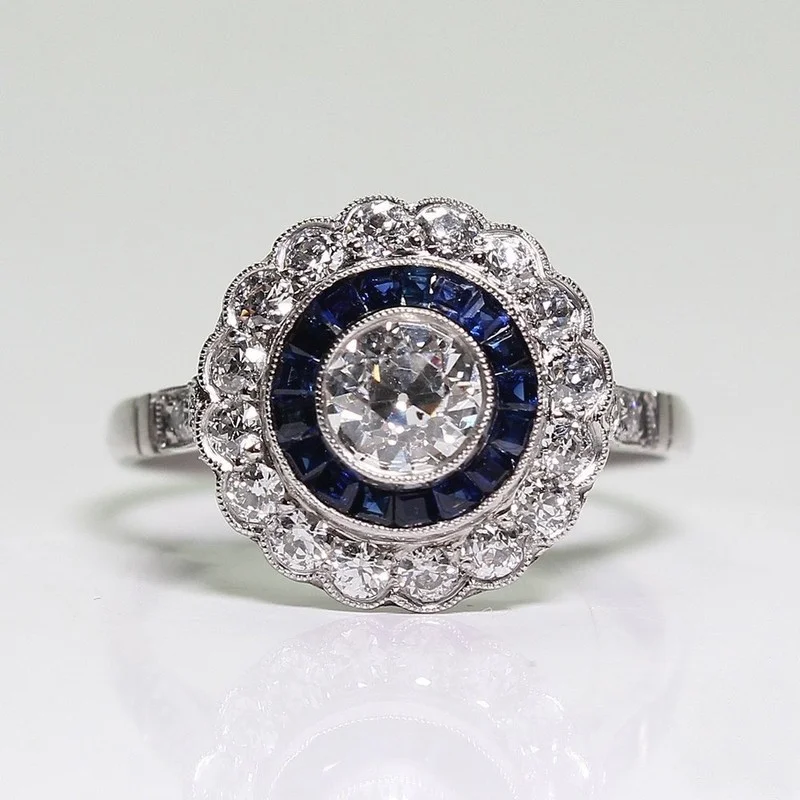Кольцо женское из цинкового сплава, с синим цирконием и кристаллом ...