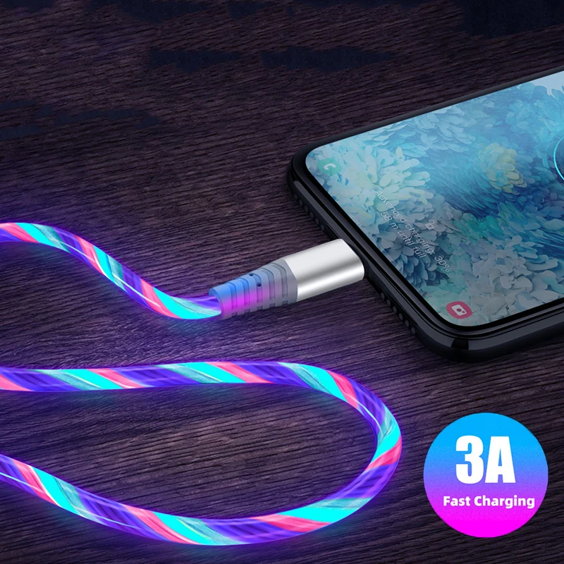 Светящийся светодиодный кабель 3A кабель для быстрой зарядки USB Ty...