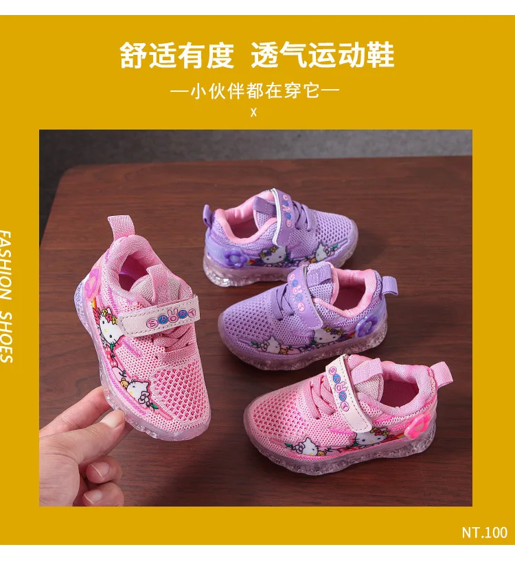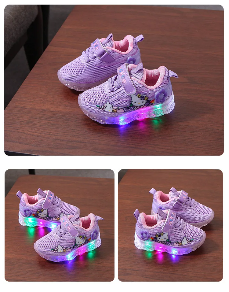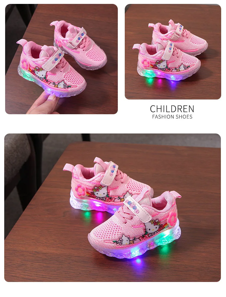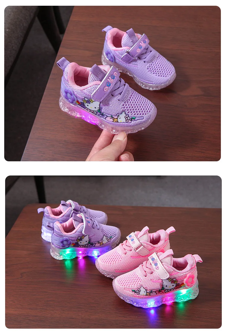 Светящиеся Детские туфли Hello Kitty, Мультяшные детские туфли для девочек, повседневсветильник легкие спортивные туфли из сетчатой ткани, светящиеся туфли для детей 1-6 лет