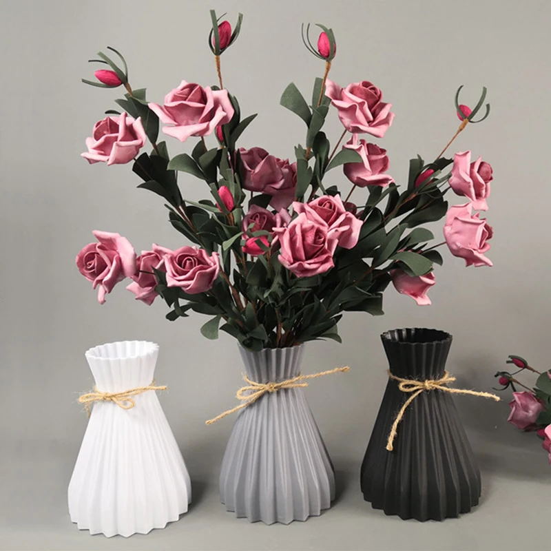 Имитация ротанга пластиковая ваза новый современный минималистичный белый серый черный розовый цветок ваза высокое качество для дома гостиной ремесла Декор