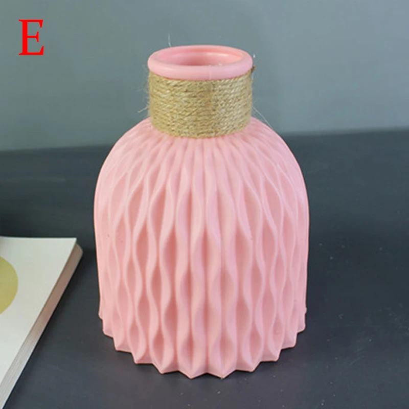 Ваза из пластика с имитацией ротанга, Современная Минималистичная ваза для цветов белого, серого, черного, розового цвета, декоративное изделие для дома, гостиной