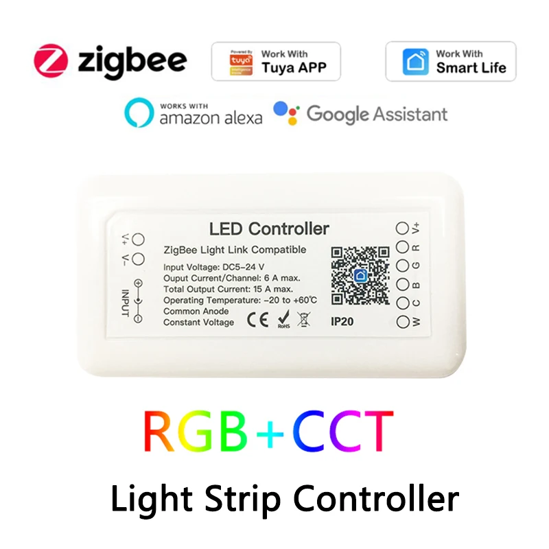 Умный светодиодный контроллер Tuya Zigbee 3,0 RGB + CCT 6pin Домашний Светильник контроллер полосы DC12-24V работает с Alexa Google Home Hub