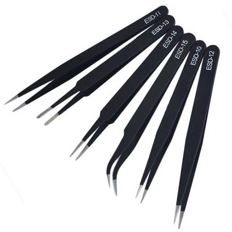 Набор антистатических пинцетов из нержавеющей стали ESD, набор инструментов для технического обслуживания и ремонта, промышленные точные прямые щипцы, Ремонтный инструмент
